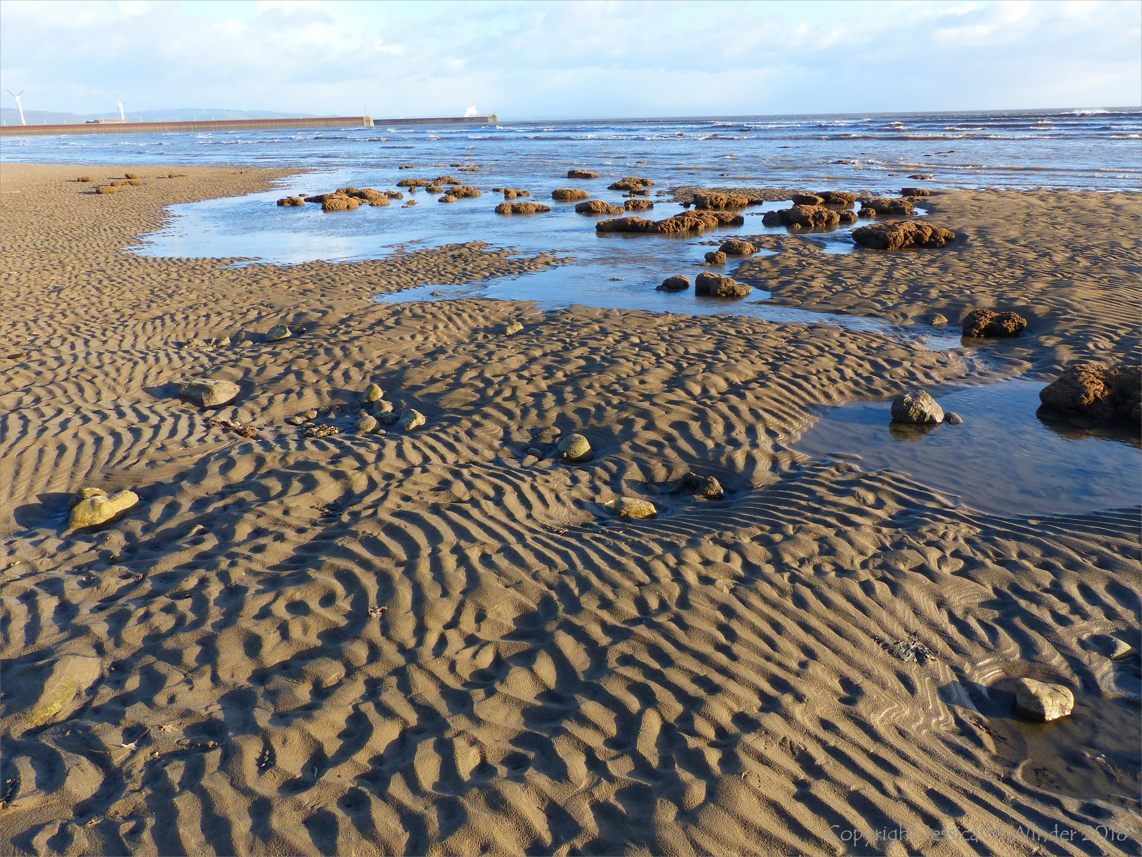 Swansea Bay Honeycomb Reefs 5 – Boulders with sand tubes made by the honeycomb worm (Sabellaria alveolata) at low tide in Swansea Bay 1st February 2018.