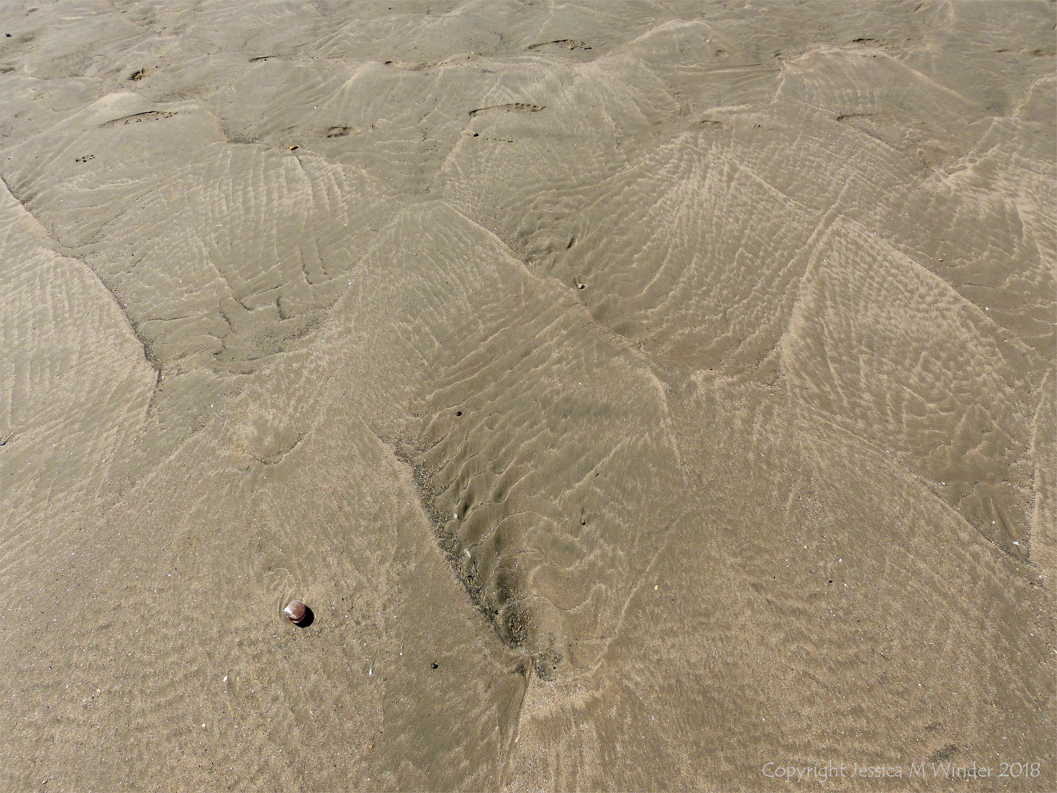Summer Beach (Rhossili) 9 – Rhossili Beach in Gower, South Wales, on a sunny summer day in August 2017, showing natural patterns on the golden sand.
