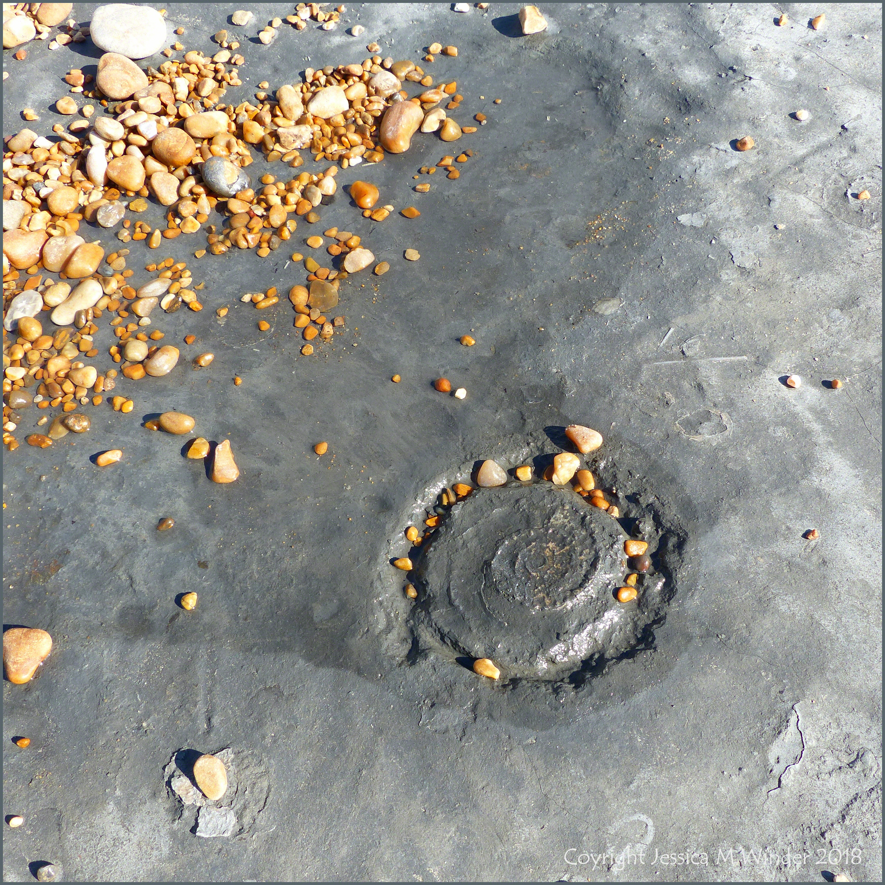 On the Beach at Seatown 2018 Feb 9 On The Beach At Seatown 2018 Feb 9 – Rock, ammonite fossil, and pebbles at Seatown on Dorset’s Jurassic Coast.