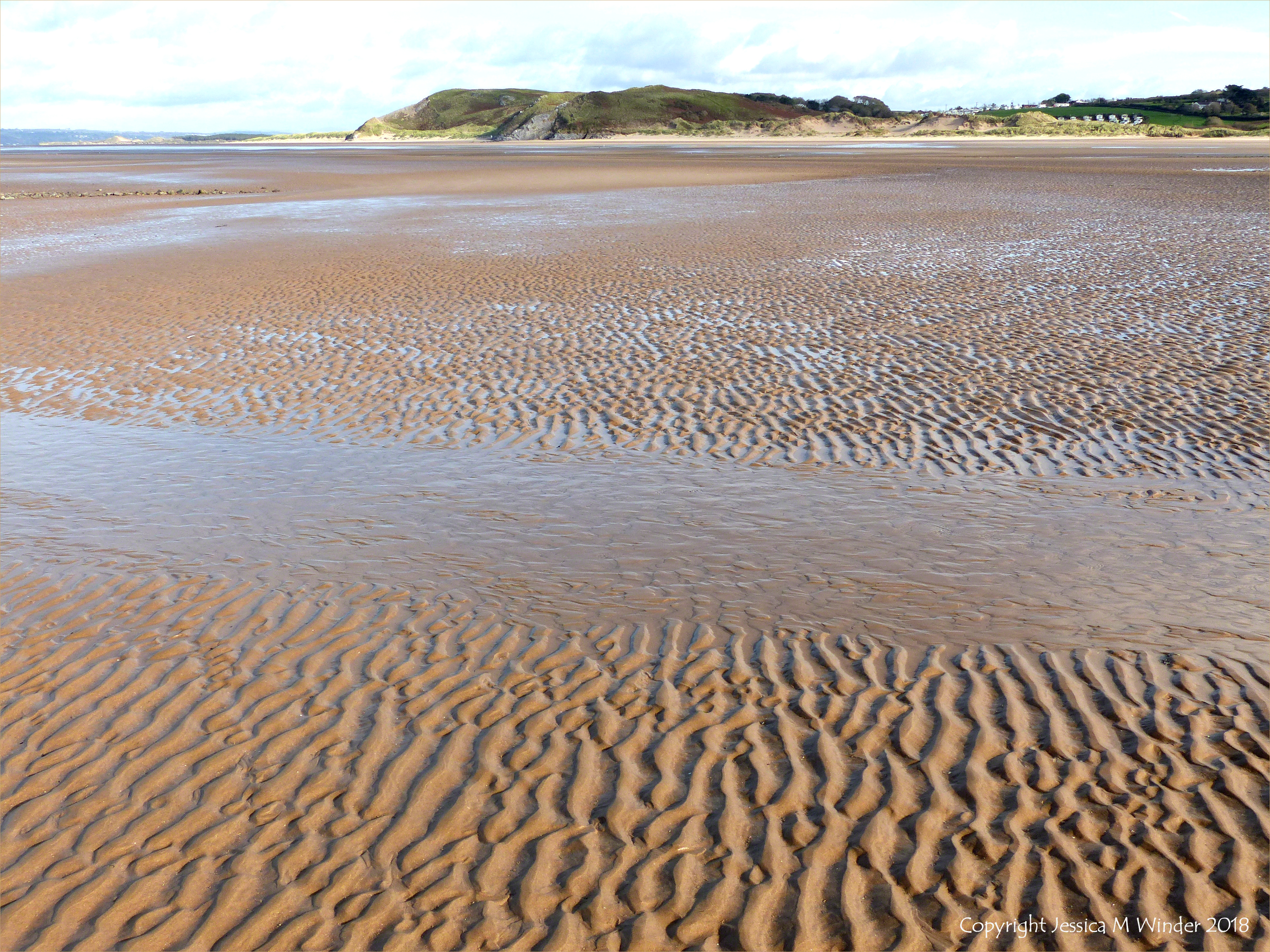 Broughton Sand Rpples 28 – View looking towards Prissen’s Tor at Broughton Bay on Gower, South Wales showing extensive sand ripple patterns