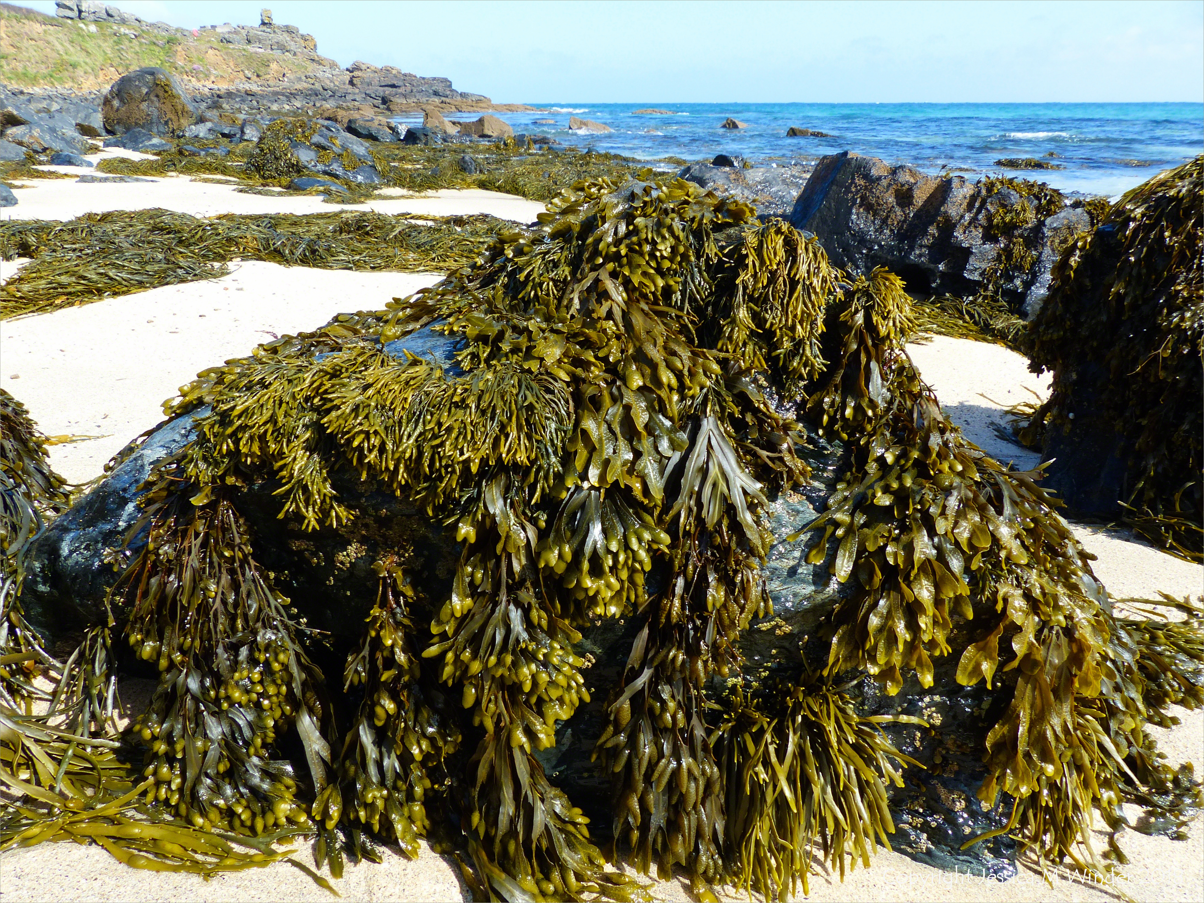 Seaweed at Porthmeor 5 – Common British seaweeds, mostly wracks (Fucoids) on Porthmeor Beach near St Ives, Cornwall, May 2015