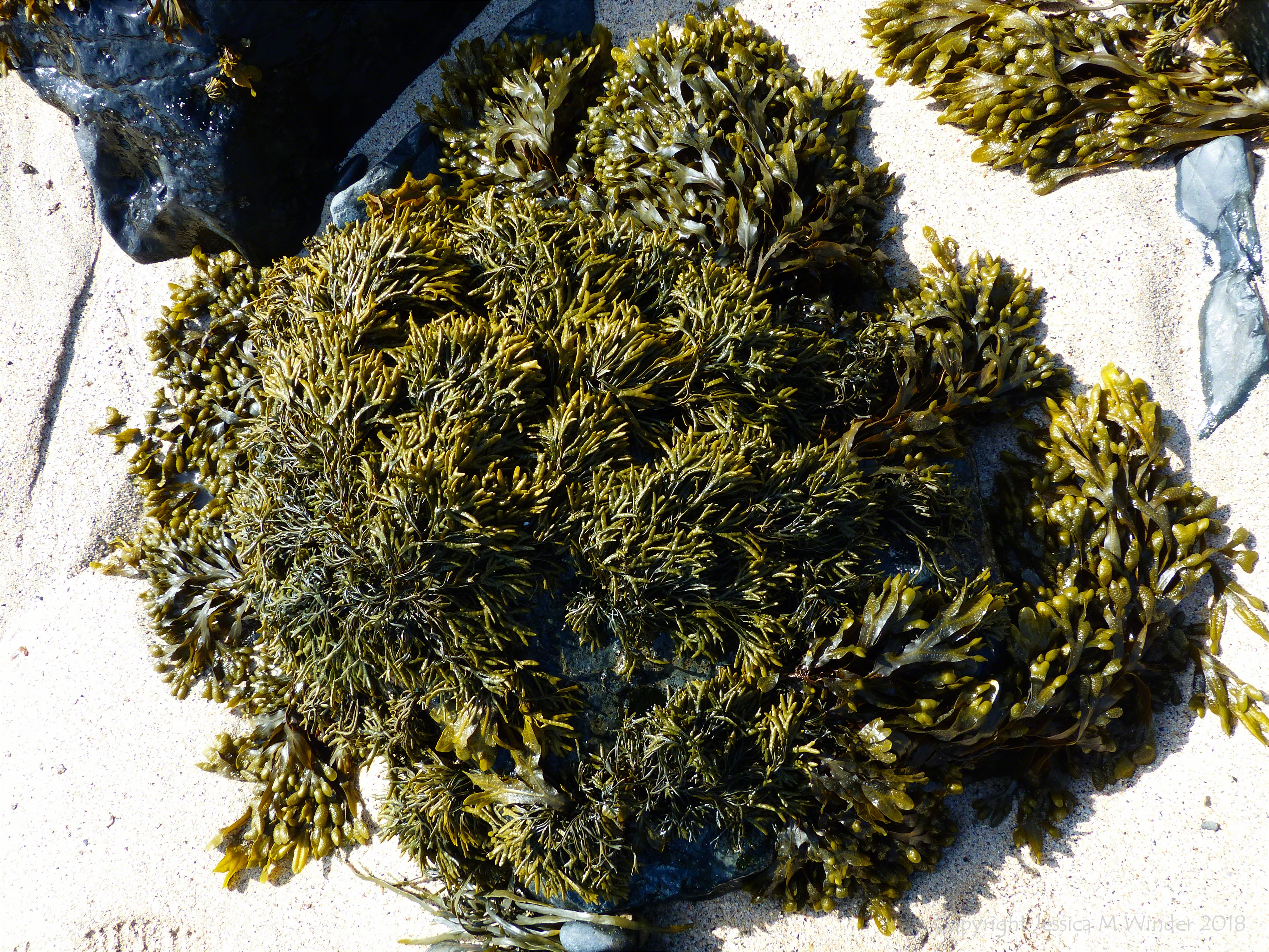 Seaweed at Porthmeor 7 – Common British seaweeds, mostly wracks (Fucoids) on Porthmeor Beach near St Ives, Cornwall, May 2015