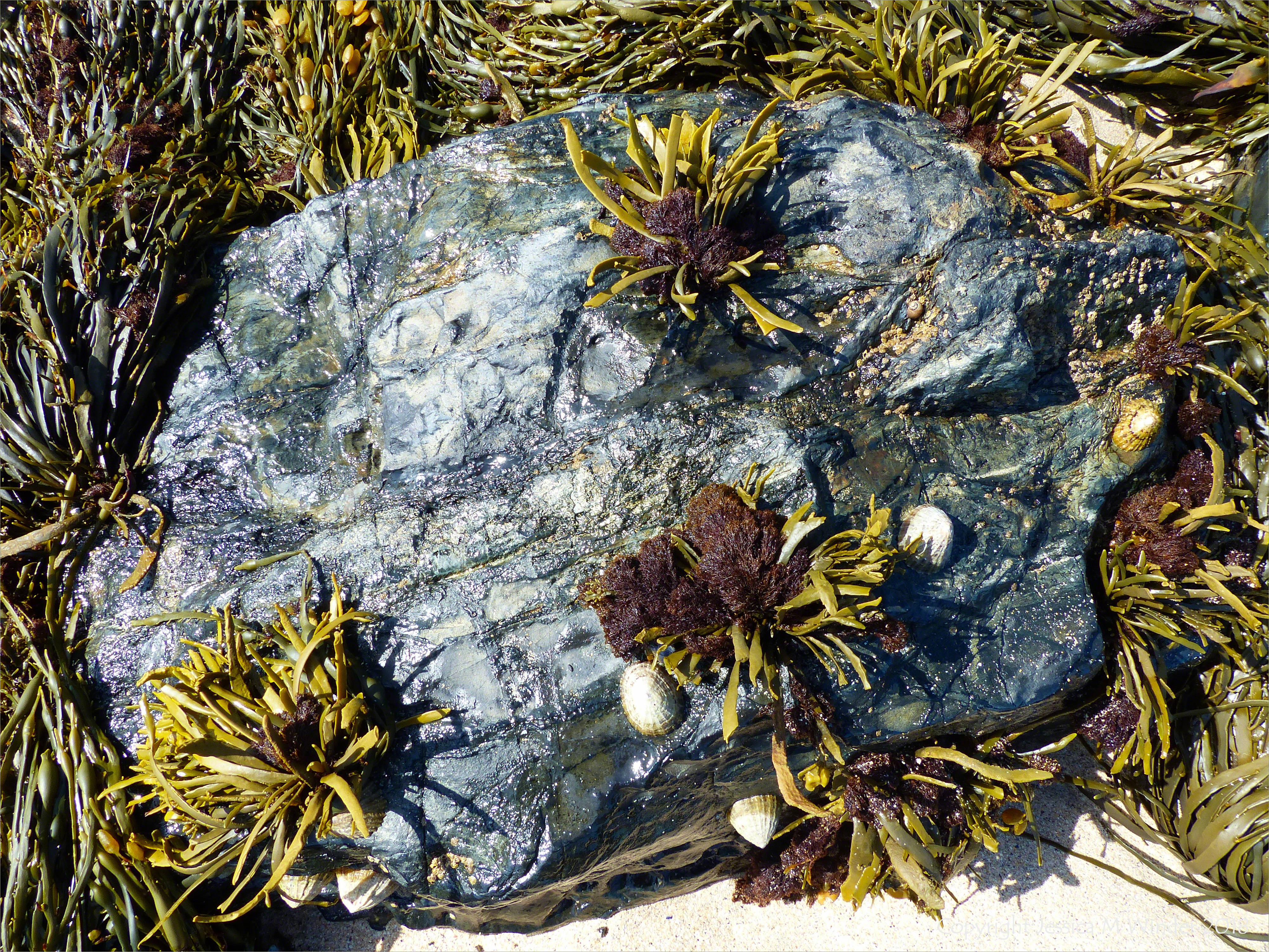 Seaweed at Porthmeor 17 – Common British seaweeds, mostly wracks (Fucoids) on Porthmeor Beach near St Ives, Cornwall, May 2015