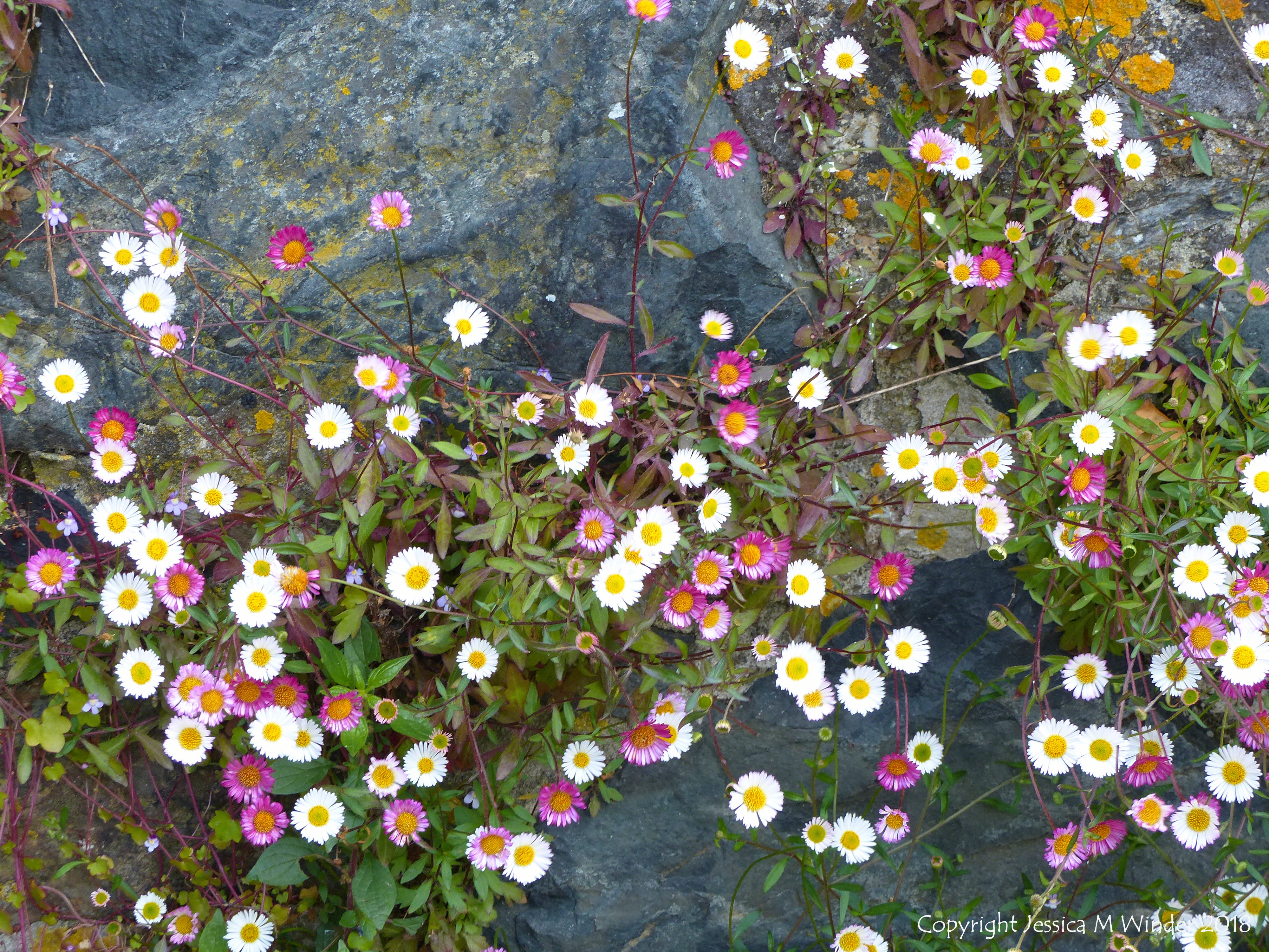 Wall Plants St Ives 3 – Daisy-like flowers growing on a wall in St Ives, Cornwall.
