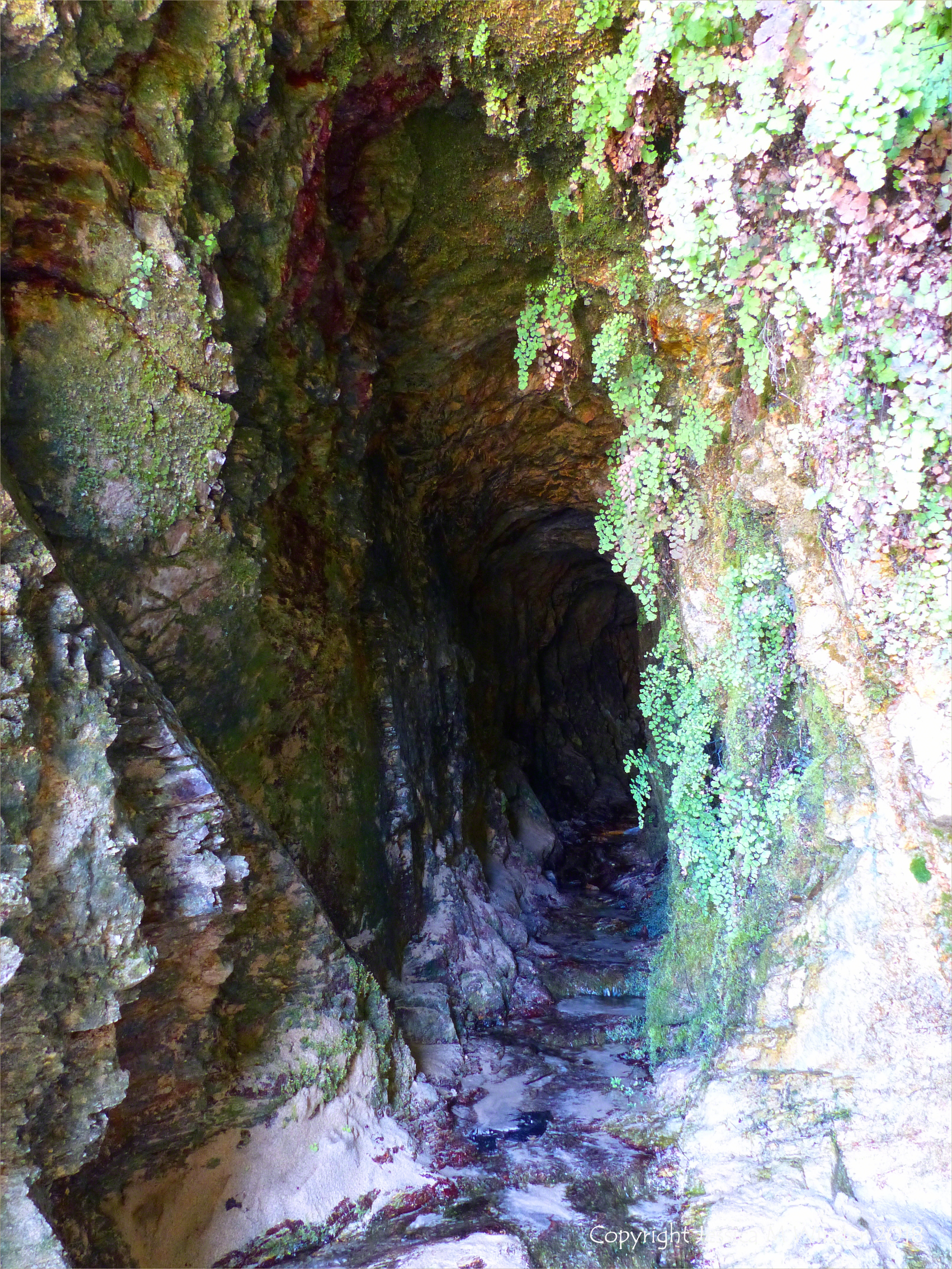 Carbis Bay (Adit)) 5 – A Wheal Providence mine adit (horizontal access and drainage tunnel) in the cliffs at Carbis Bay near St Ives in Cornwall May 2015