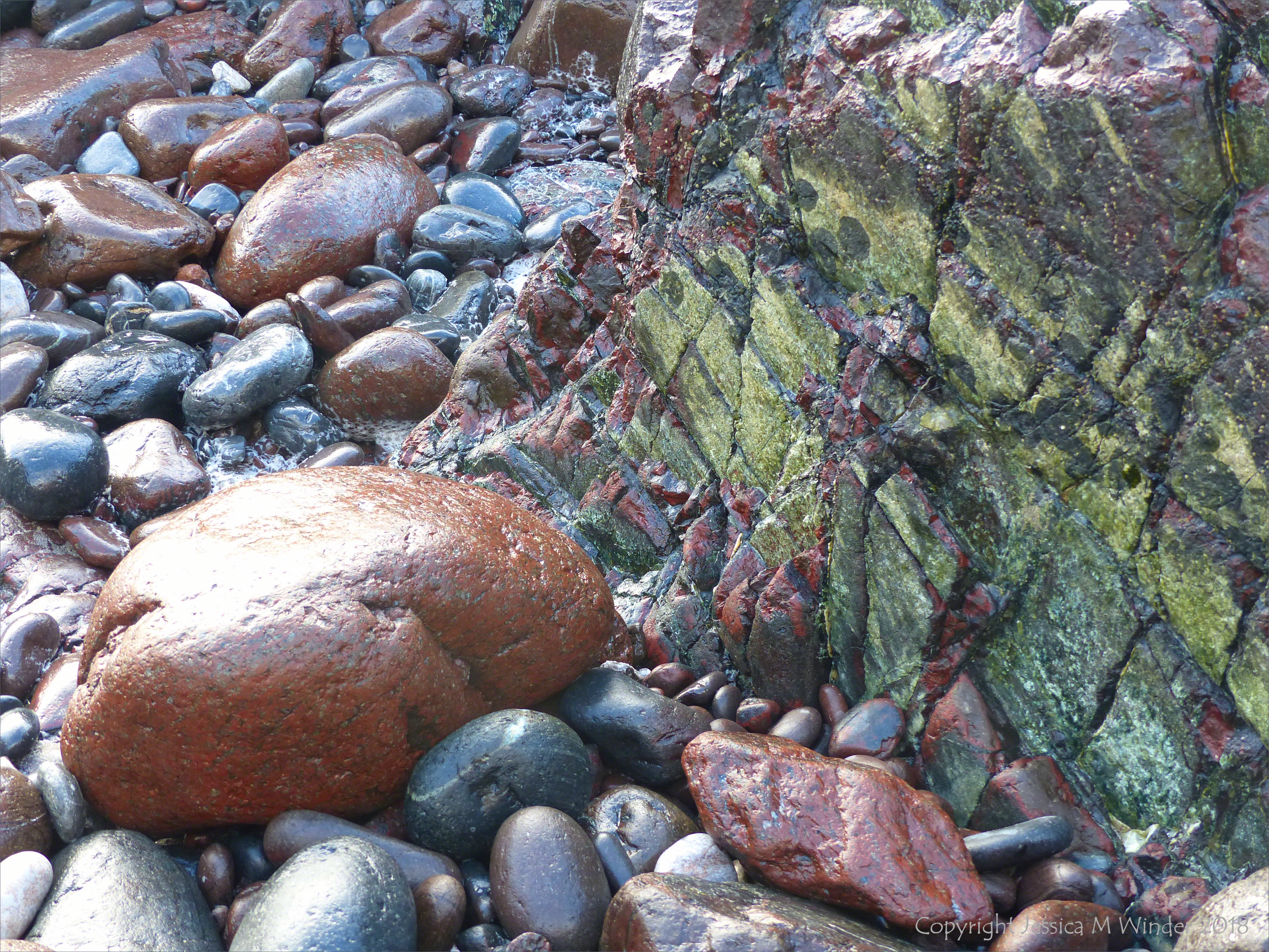 Kynance Rocks 20 – Close-up details of rock texture and pattern in serpentinite, which is hydrothermally altered mantle peridotites, at Kynance Cove on the Lizard Peninsula in Cornwall.