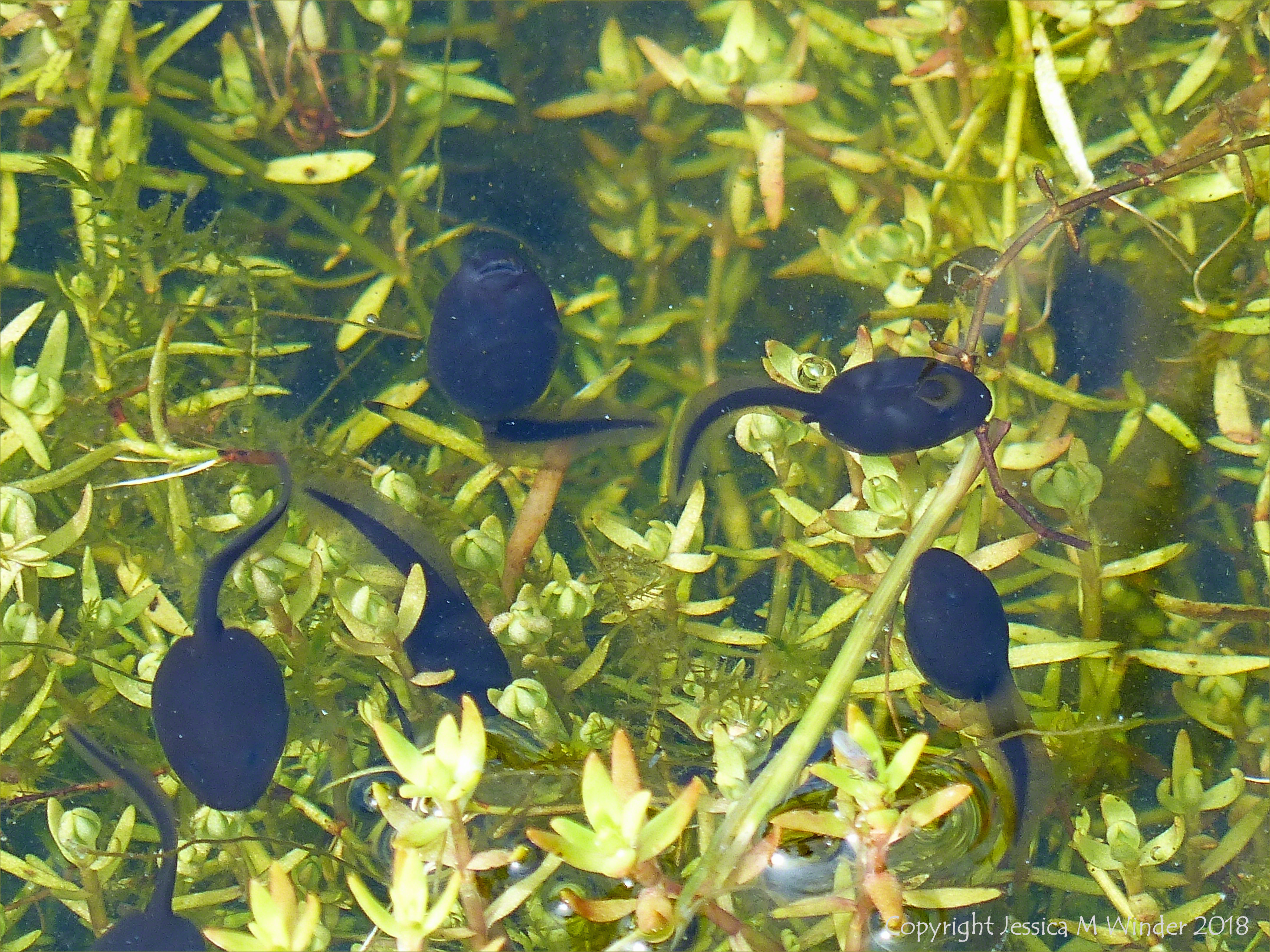 Toadpoles 11 – Tadpoles that will grow into toads among the water weeds in the village pond on the nature reserve in Charlton Down, May 2018