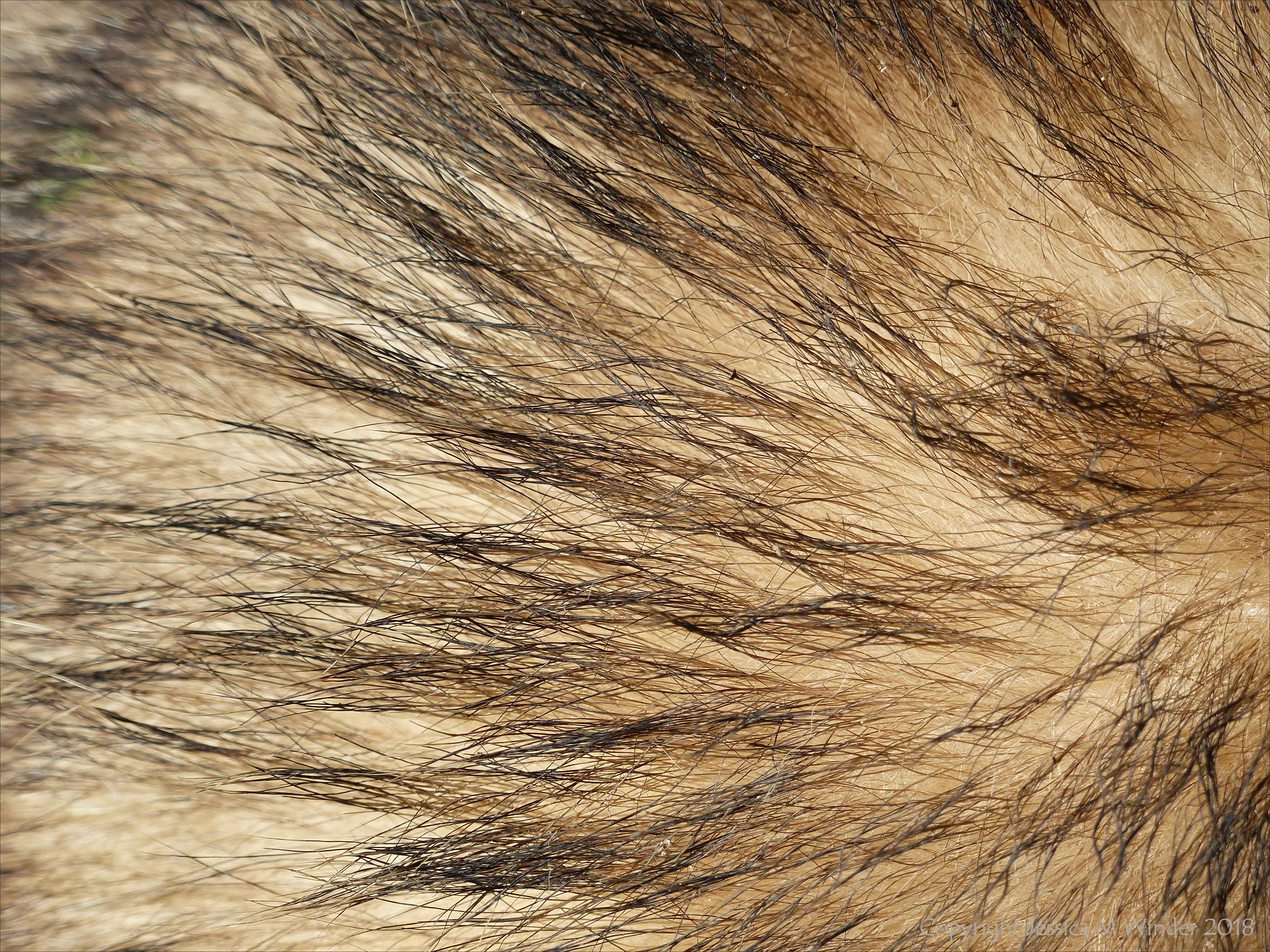Dead Badger 7 – Close-up of guard hairs and underfur on a dead badger (Meles meles) found at Charlton Down, Dorset, England, April 2018.