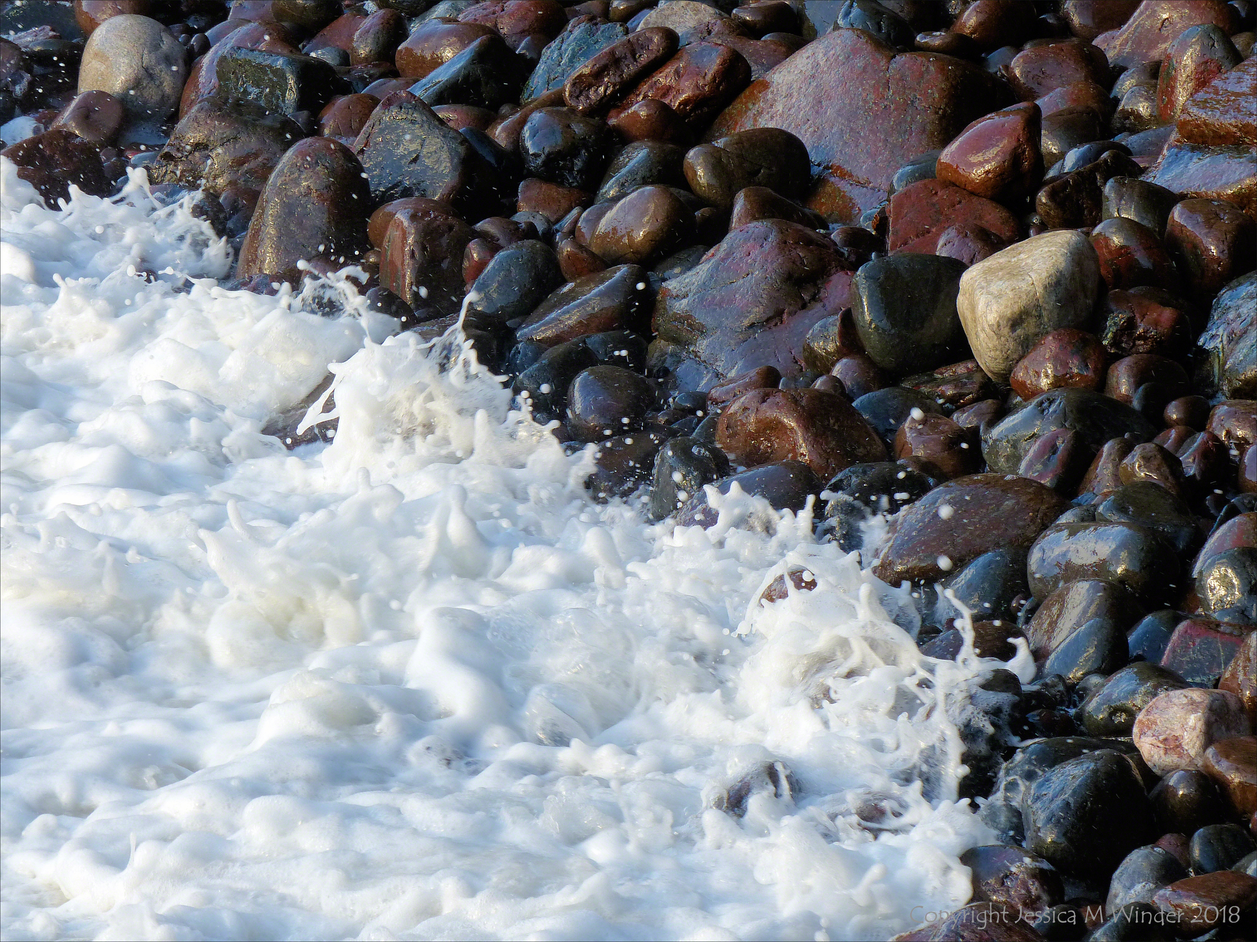 Kynance Pebbles 13 Kynance Pebbles 13 – Mostly serpentine pebbles with white sea-foam at Kynance Cove in Cornwall, England