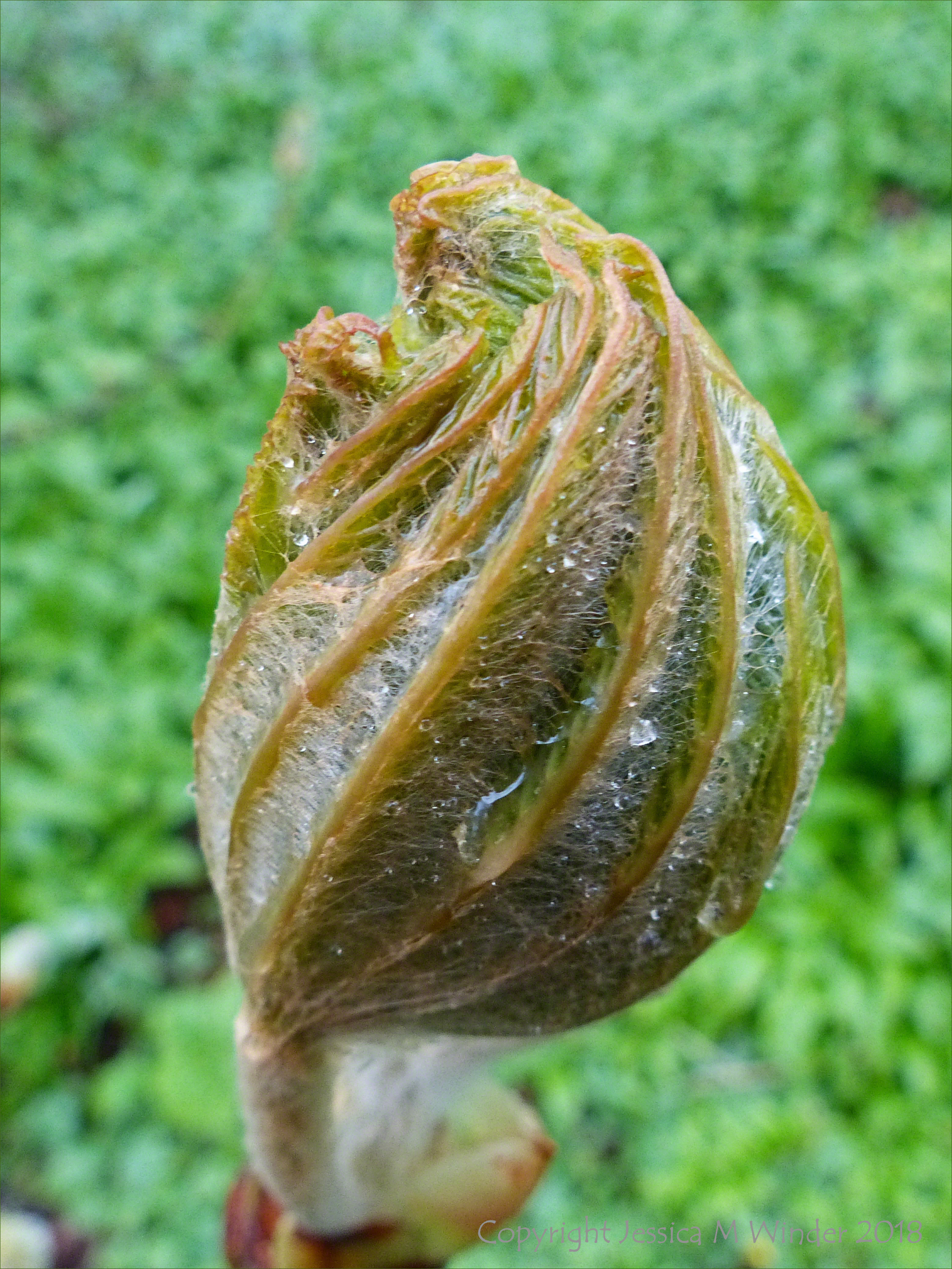 Horse Chestnut Opening Leaves 5 – Leaves unfolding from the sticky-bud of a horse chestnut tree (Aesculus hippocastanum)