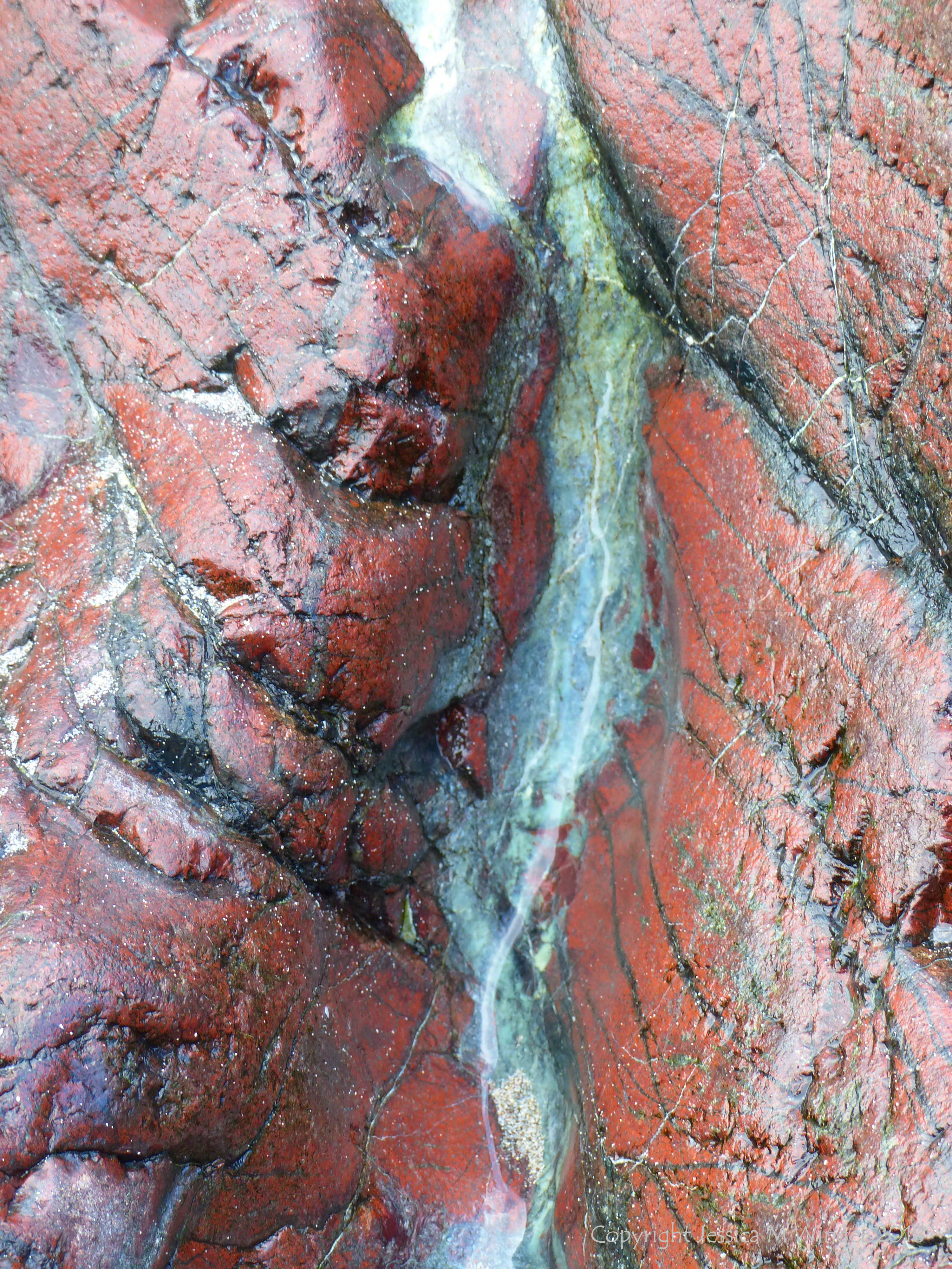 Kynance Rocks 30 – Red serpentine rock detail at Kynance Cove in Cornwall.