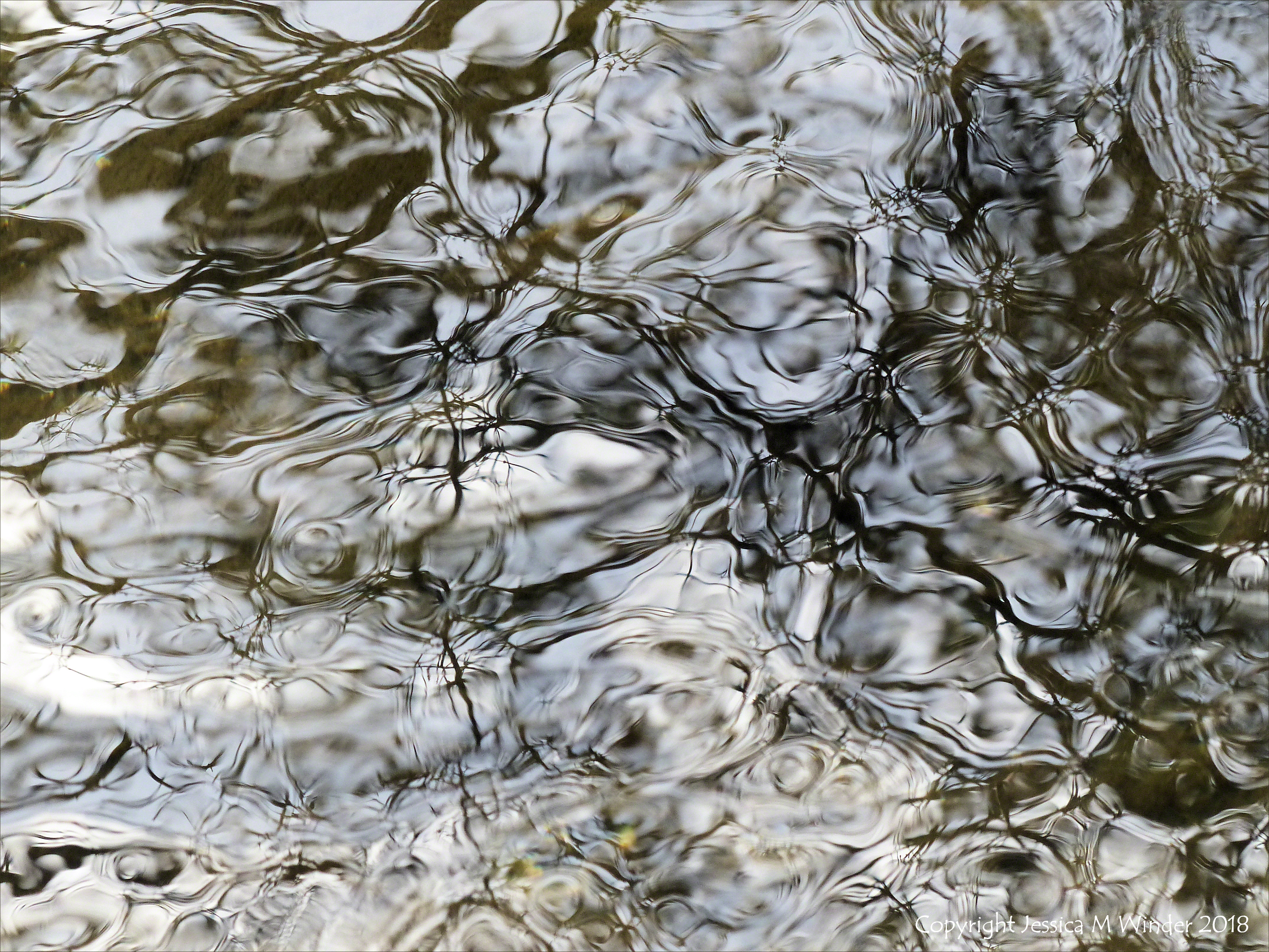 C S Reflections 8 – Natural abstract pattern and texture on the surface of flowing water in the Cerne stream in Dorset.