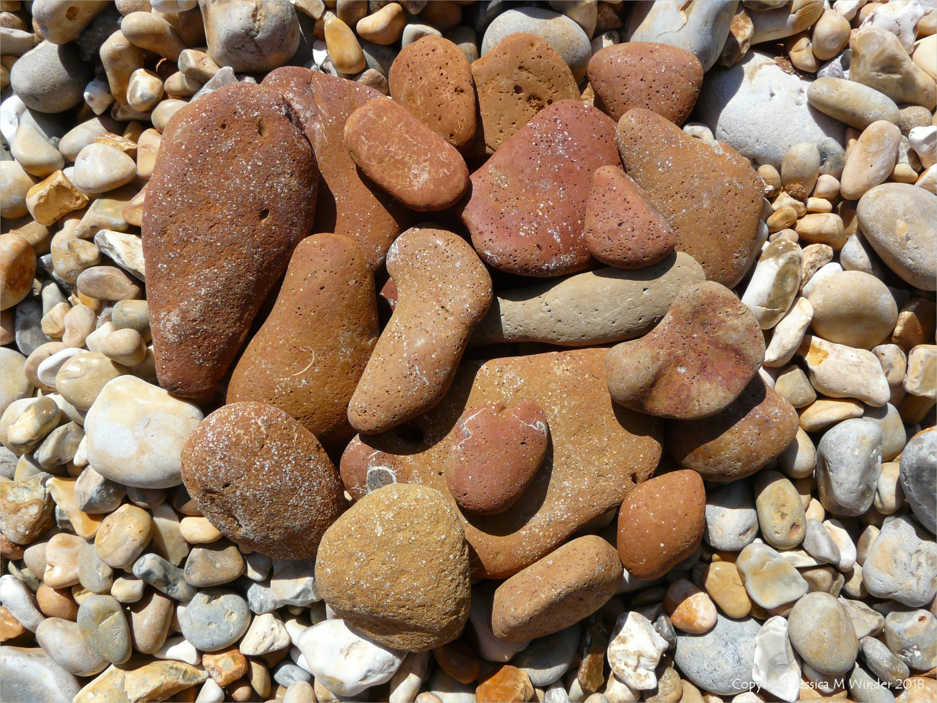 Ringstead Pebbles – a selection of rusty coloured ones found on the beach