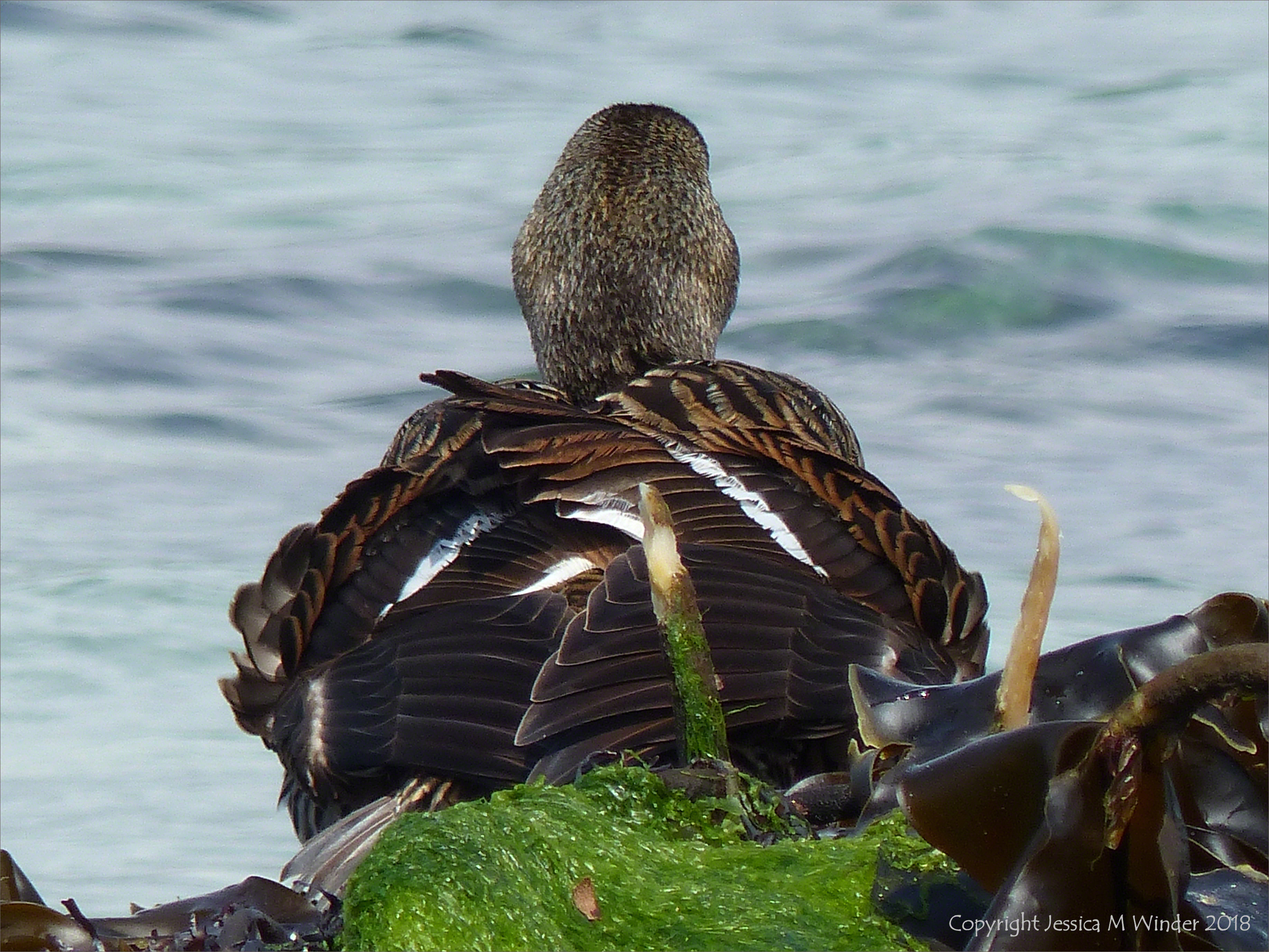 Grit Ness 37 – Female Eider Duck on the old stone pier at Grit Ness in Orkney