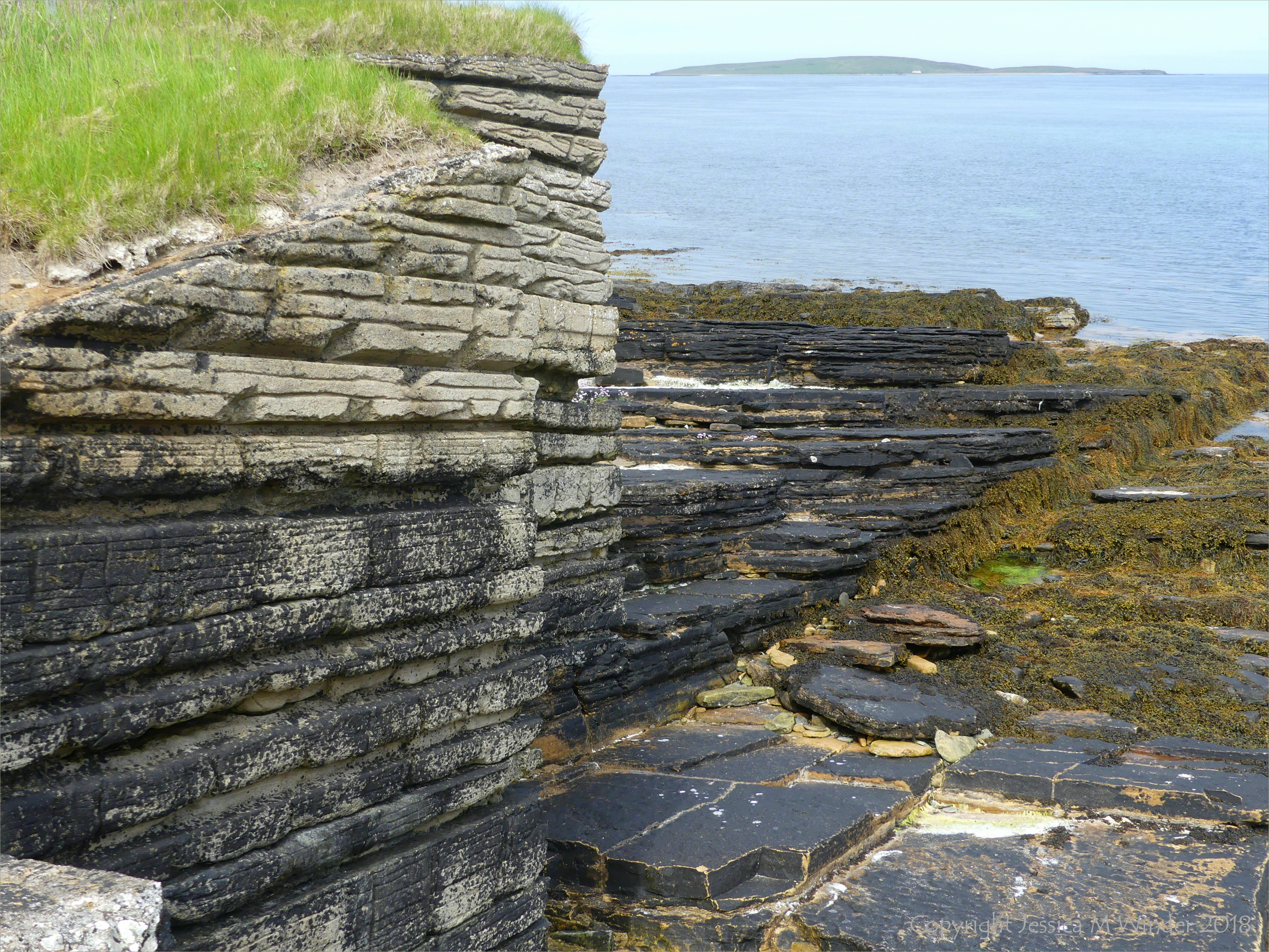 Point of Hellia 9 – The artificial concrete cliffs and the real flagstone at Point of Hellia in Orkney June 2018