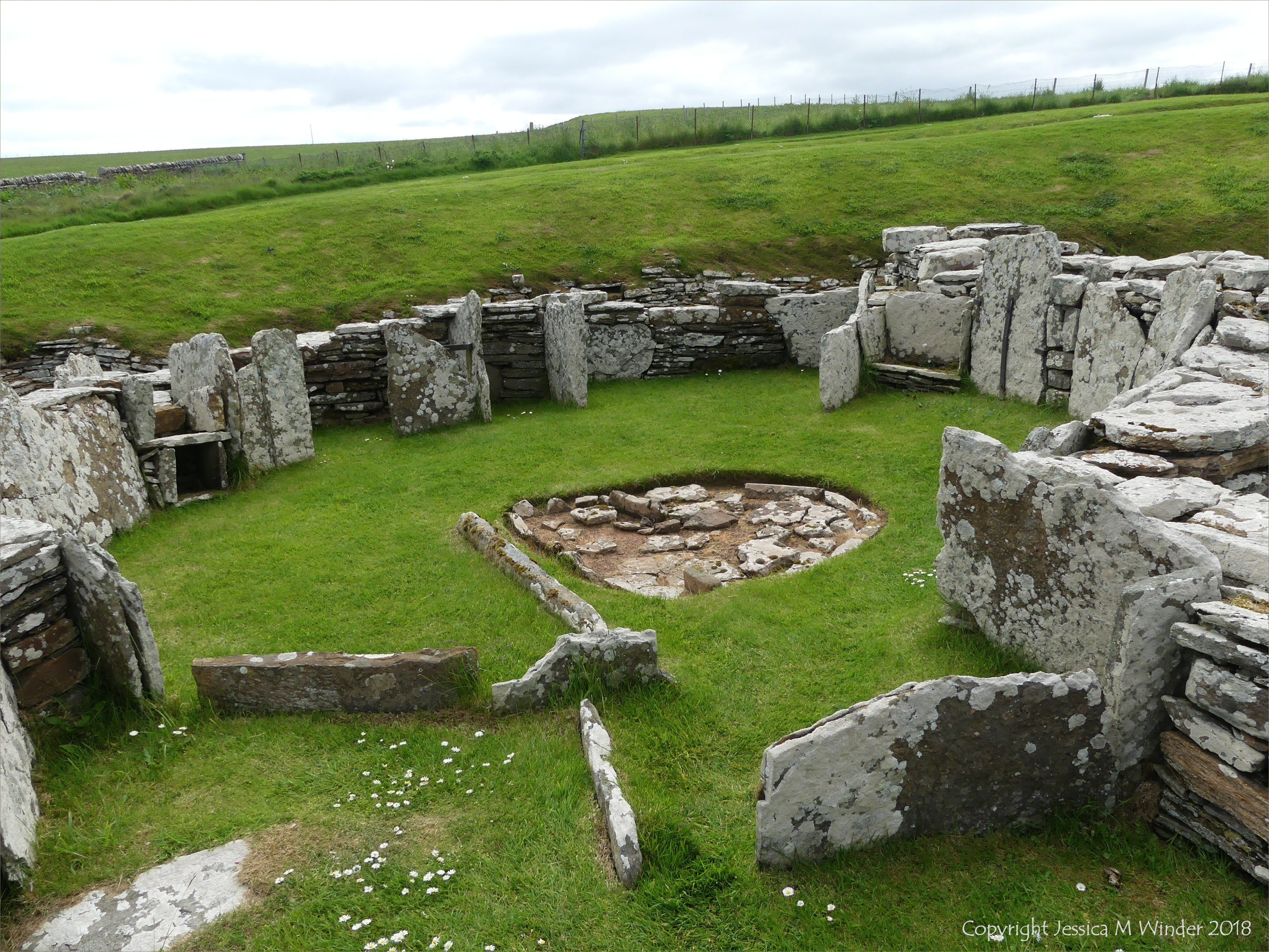 Broch of Gurness 10 – A The base part of a house built outside the central broch tower in the archaeological remains of the Iron-Age settlement called Broch of Gurness on West Mainland in Orkney, built with slabs of Stromness Flagstone dating from the Devonian Period about 400 million years ago.