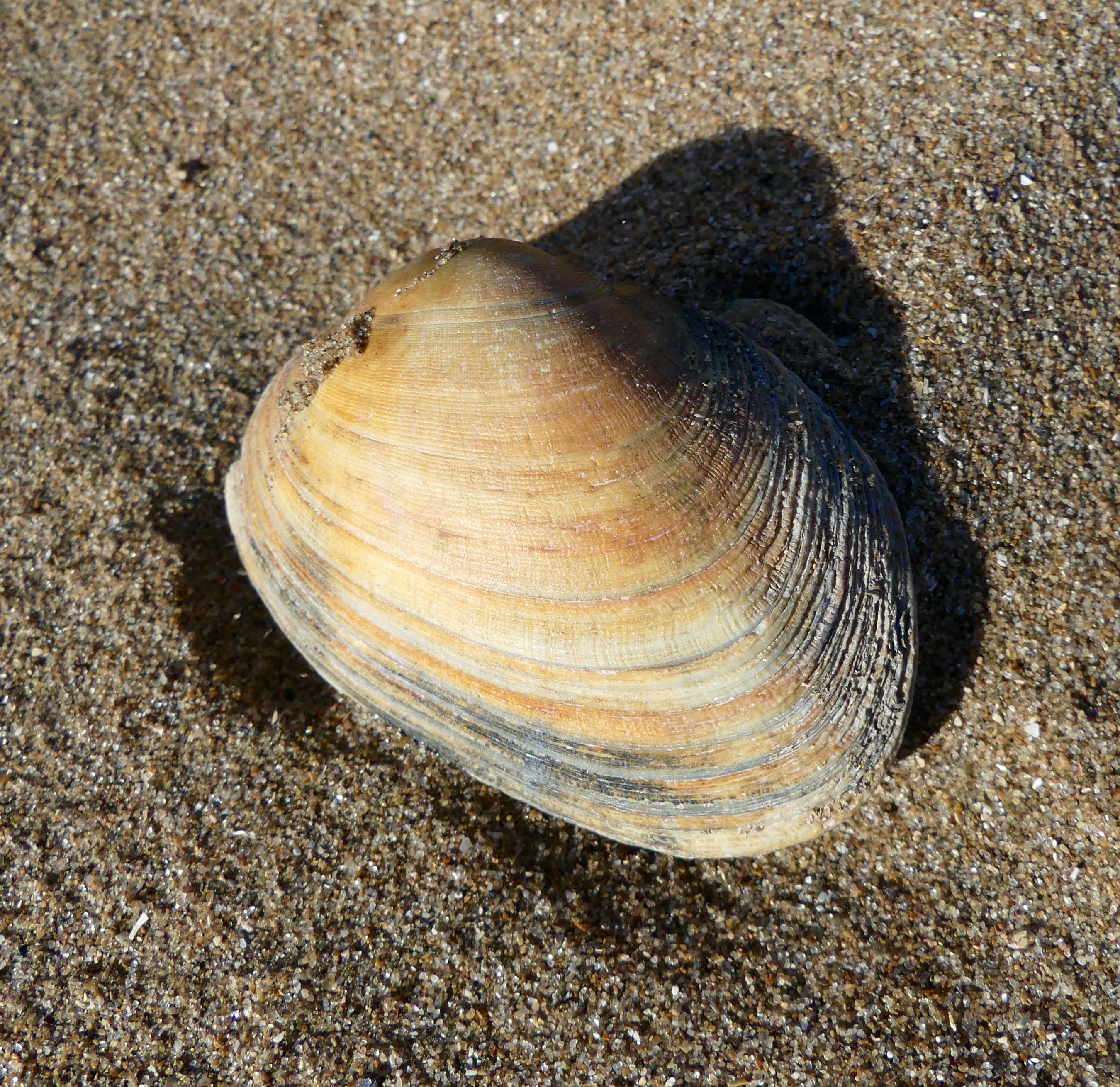 Beach finds at Swansea Bay 35 – Carpet shell on a sandy beach