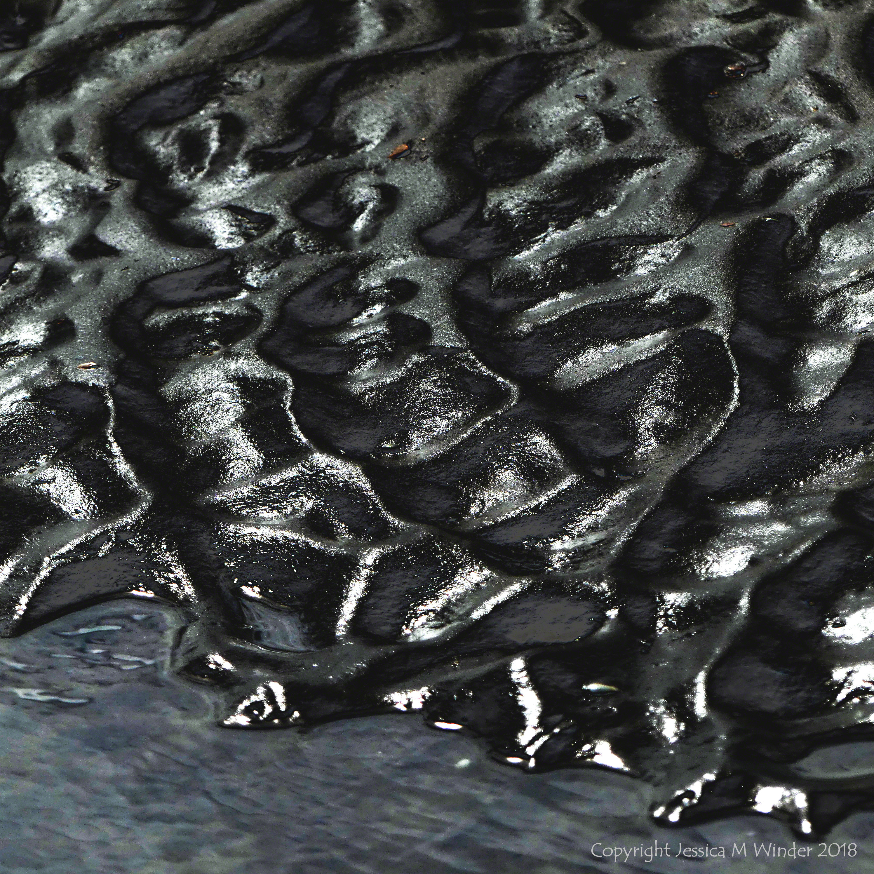 Shimmering Sand Ripples 2 – Wet sand ripples on the low sea shore, glistening with reflected light. A modified photograph taken at Swansea Bay August 2018.