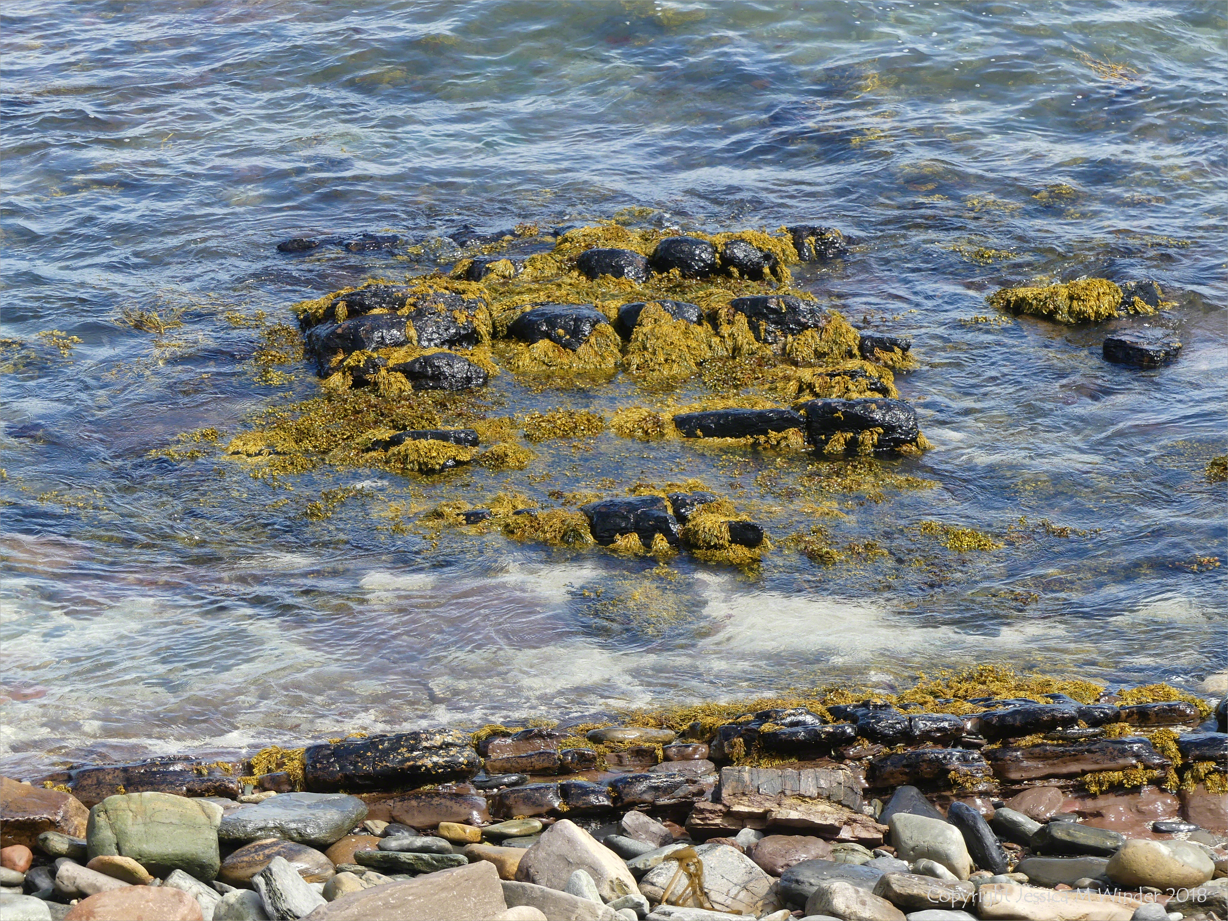 Newark Bay 20 – Seaweed-covered rocks in the water at Newark Bay in Orkney June 2018