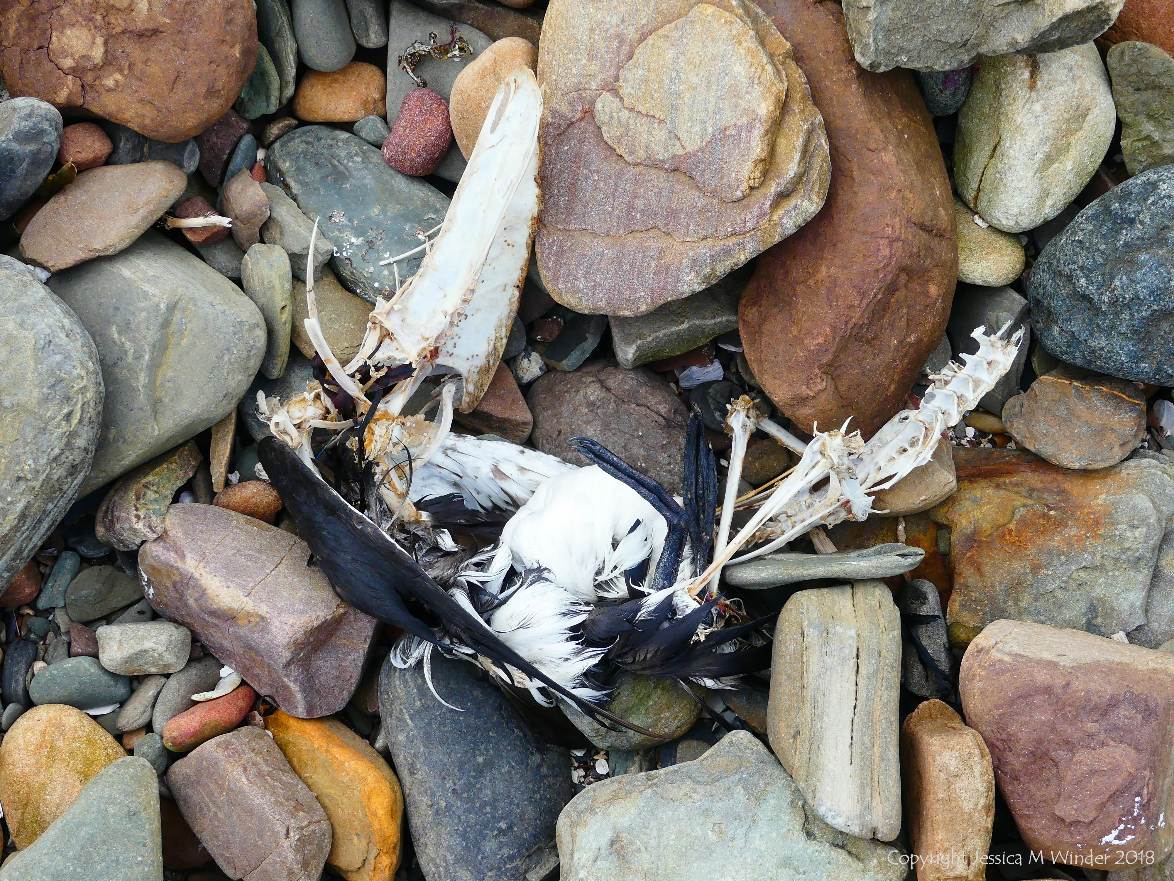 Newark Bay 34 Newark Bay 34 – Remains of a dead sea bird on the beach stones at Newark Bay in East Orkney June 2018