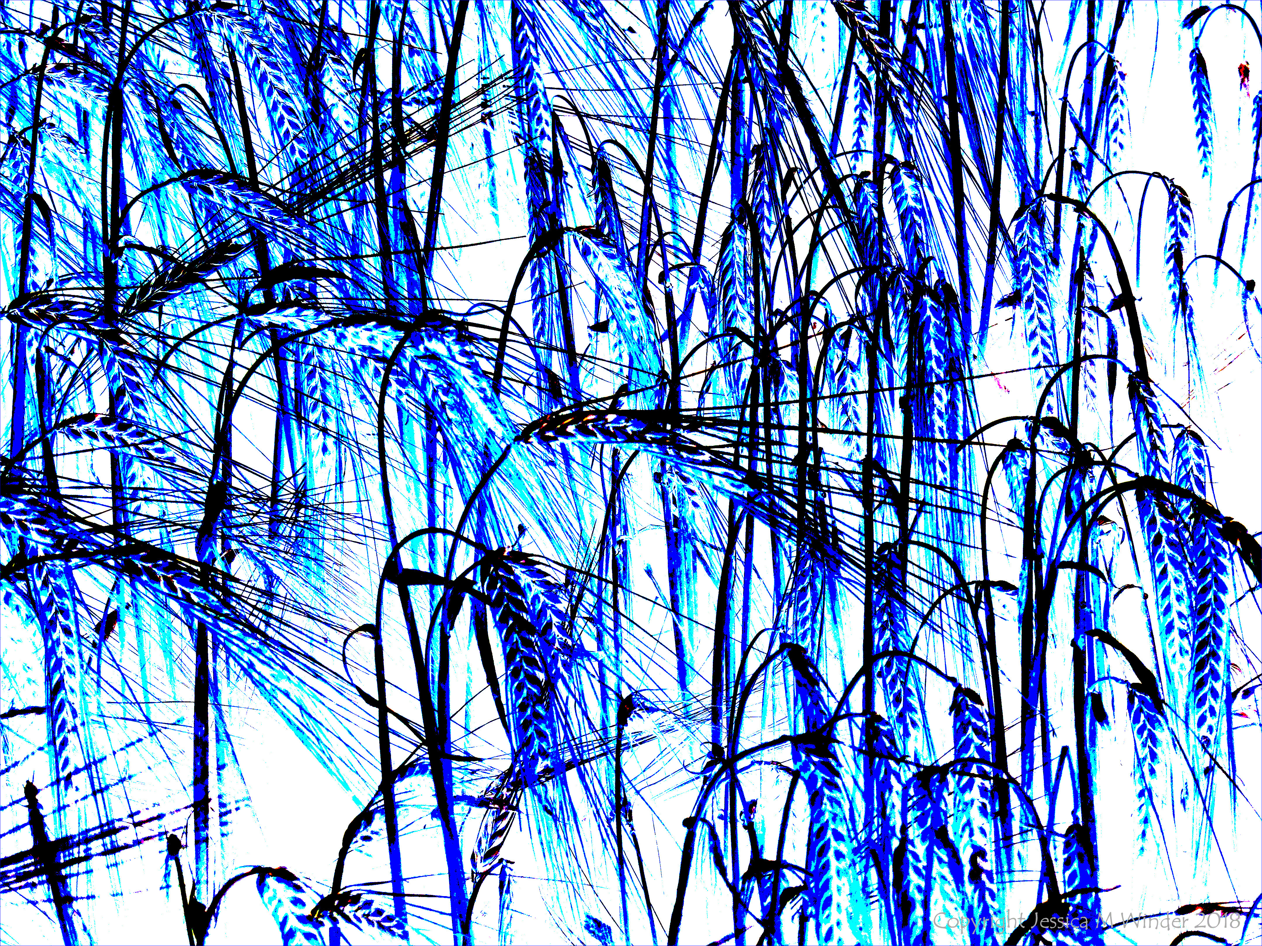 Blue Barley 3 – Art design with blue barley motif recoloured from a photograph of a natural standing cereal crop of barley