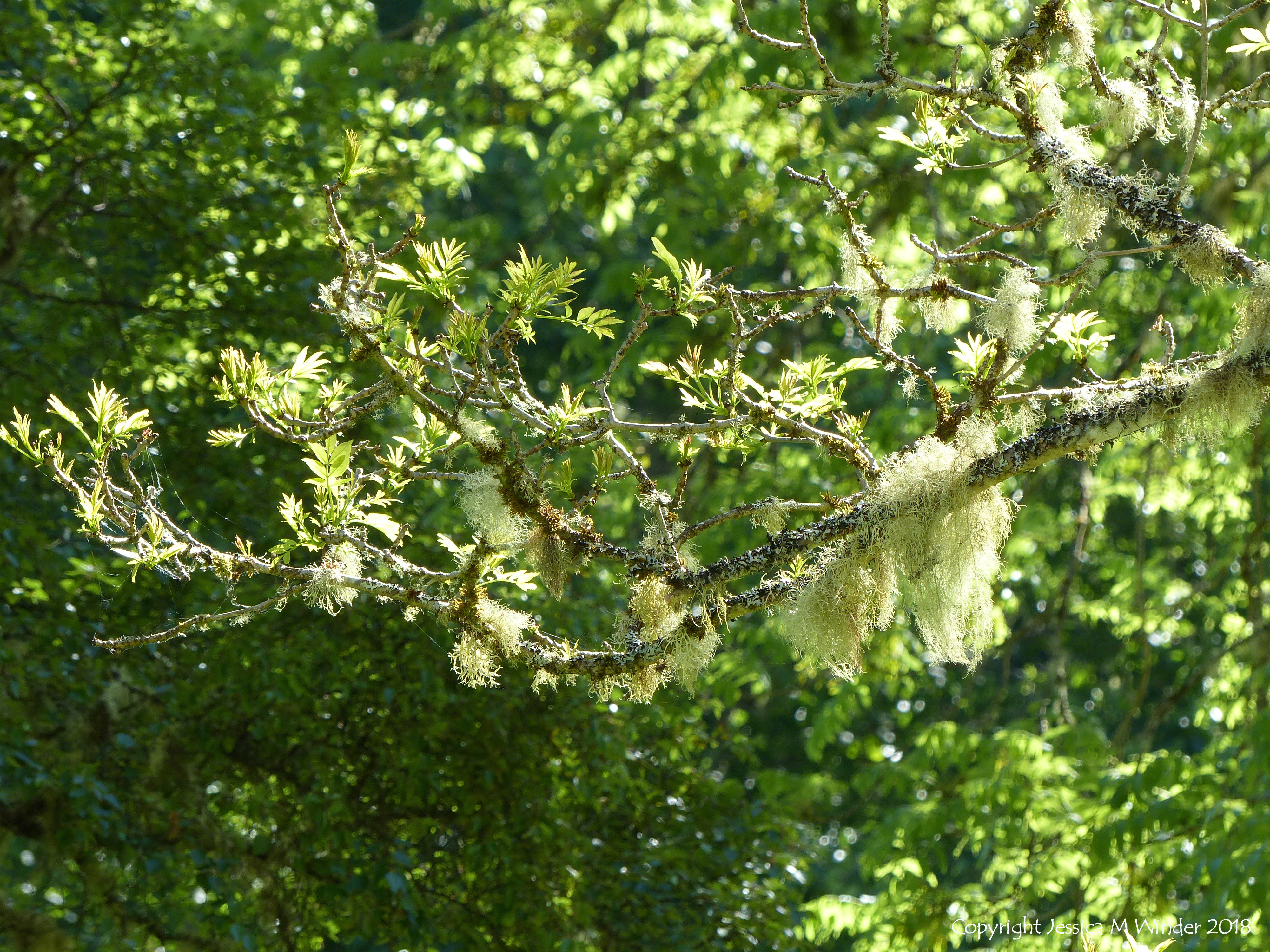 Farigaig 1 – Nature with lichen growing on trees along the Farigaig forest trail on the banks of Loch Ness in Scotland June 2018