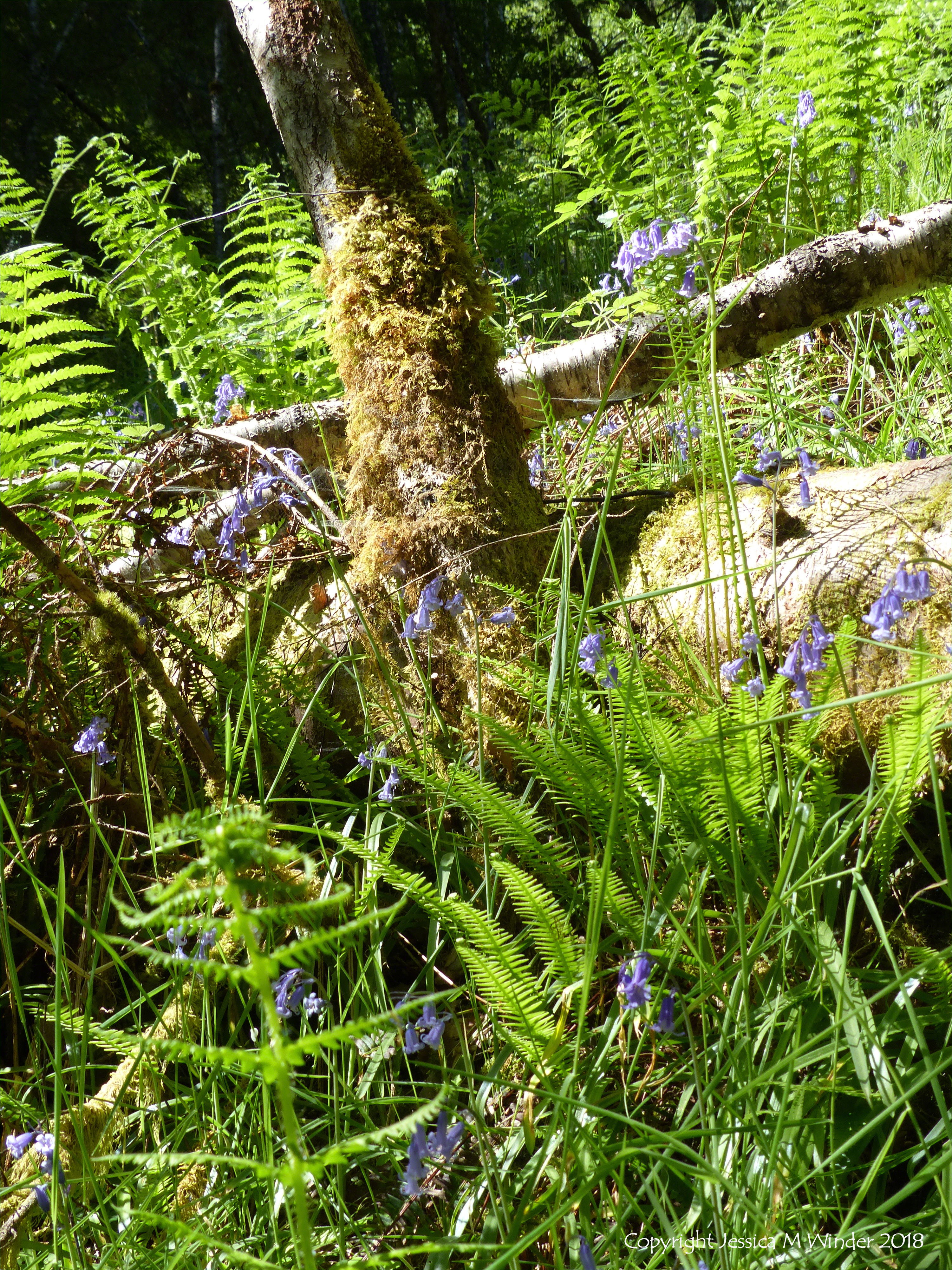 Farigaig 14 – Ferns and bluebells on the hillside slopes of the Farigaig forest trail on the banks of Loch Ness in Scotland June 2018