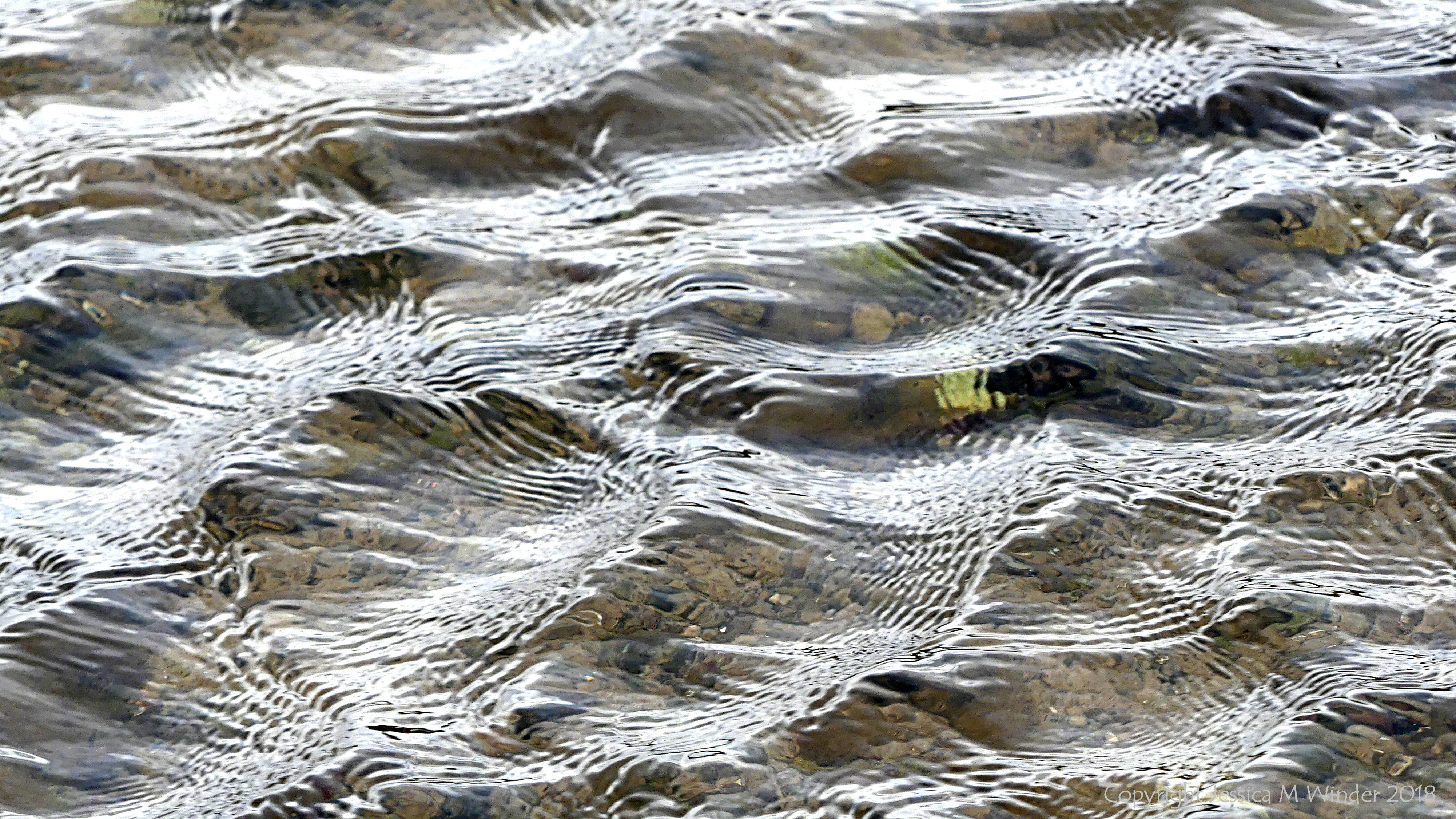 Water from Skaith at Waulkmill 3 – Natural river surface water texture and patterns where water from Loch Kirbister and the Skaill crosses the sandy beach at Waulkmill Bay in Orkney, and onshore wind created a counter-flow against the current creating ripples.