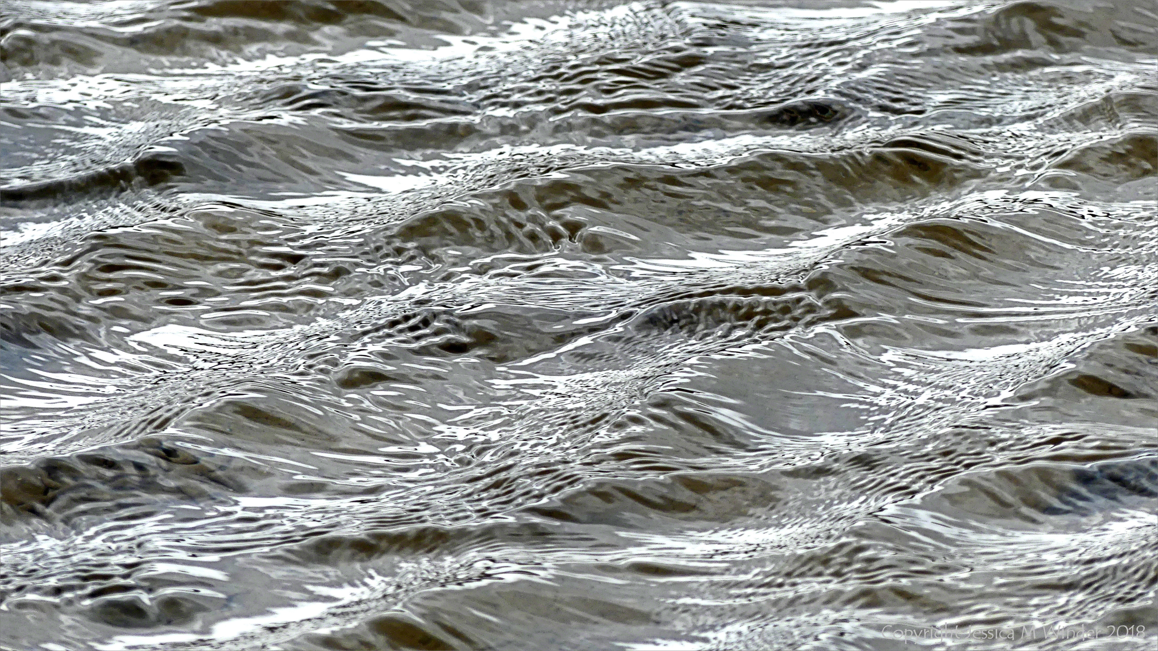Water from Skaith at Waulkmill 11 – Natural river surface water texture and patterns where water from Loch Kirbister and the Skaill crosses the sandy beach at Waulkmill Bay in Orkney, and onshore wind created a counter-flow against the current – making ripples with reflected light.