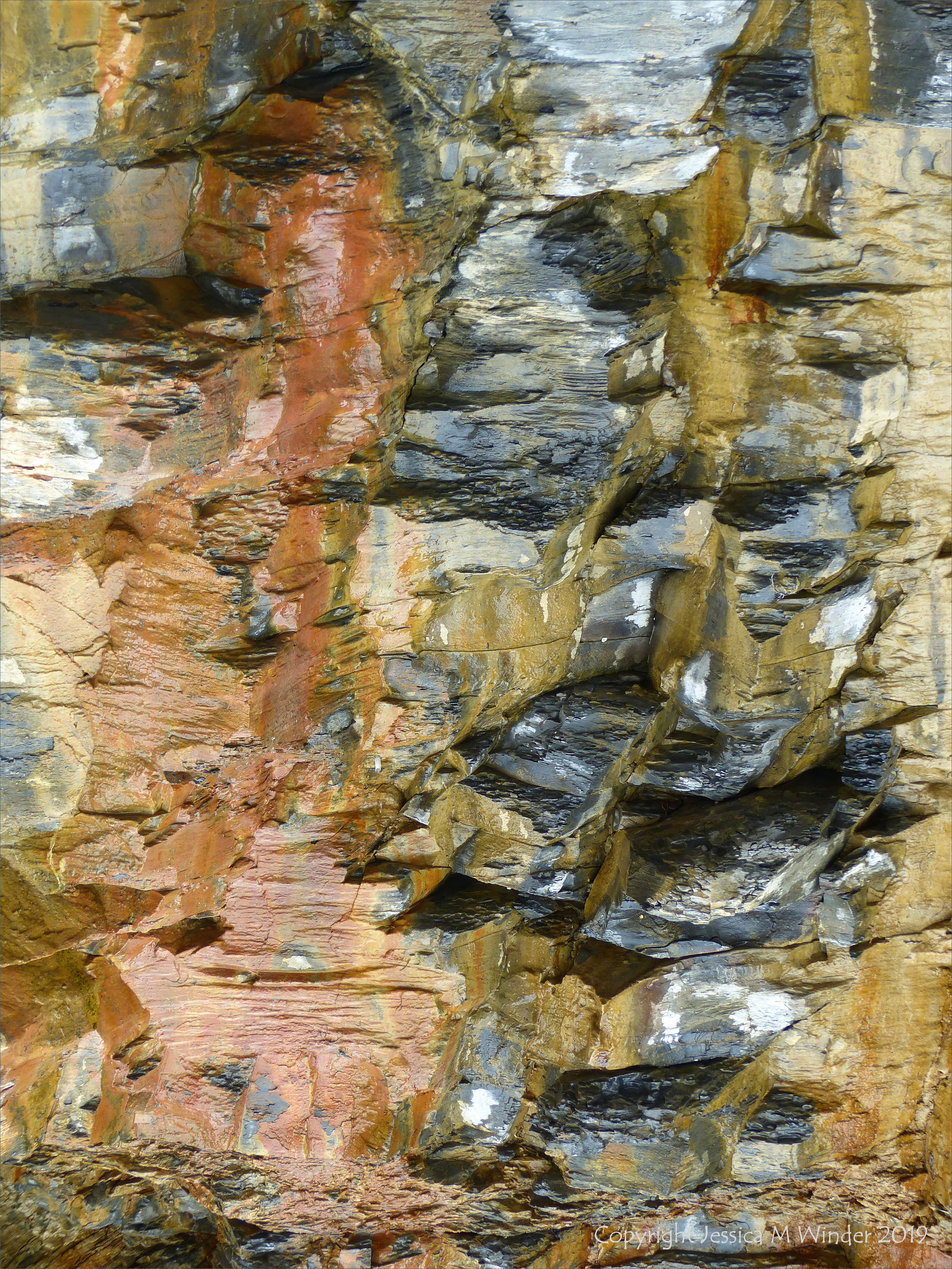 Weathering KB33 – Textures produced by weathering and erosion processes on a cliff face of sedimentary rock strata belonging to the Kimmeridge Clay Formation in Dorset on the World Heritage Jurassic Coast