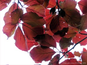 Beech Leaves 10 – The effect of sun light shining through the newly opened leaves on a copper beech tree in spring. The luminosity of leaves in sunlight.