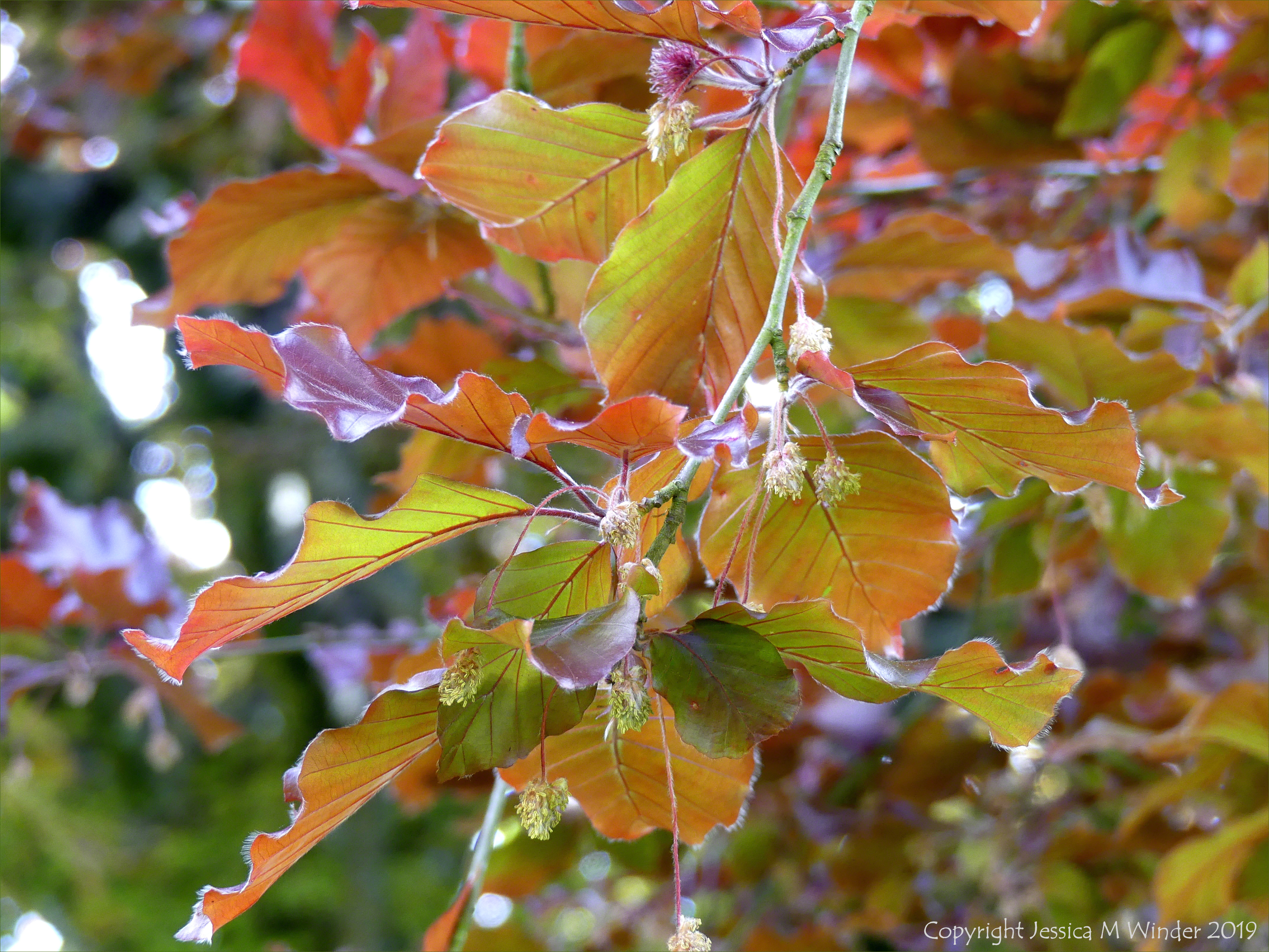 Beech Leaves 11 – The effect of sun light shining through the newly opened leaves on a copper beech tree in spring. The luminosity of leaves in sunlight.