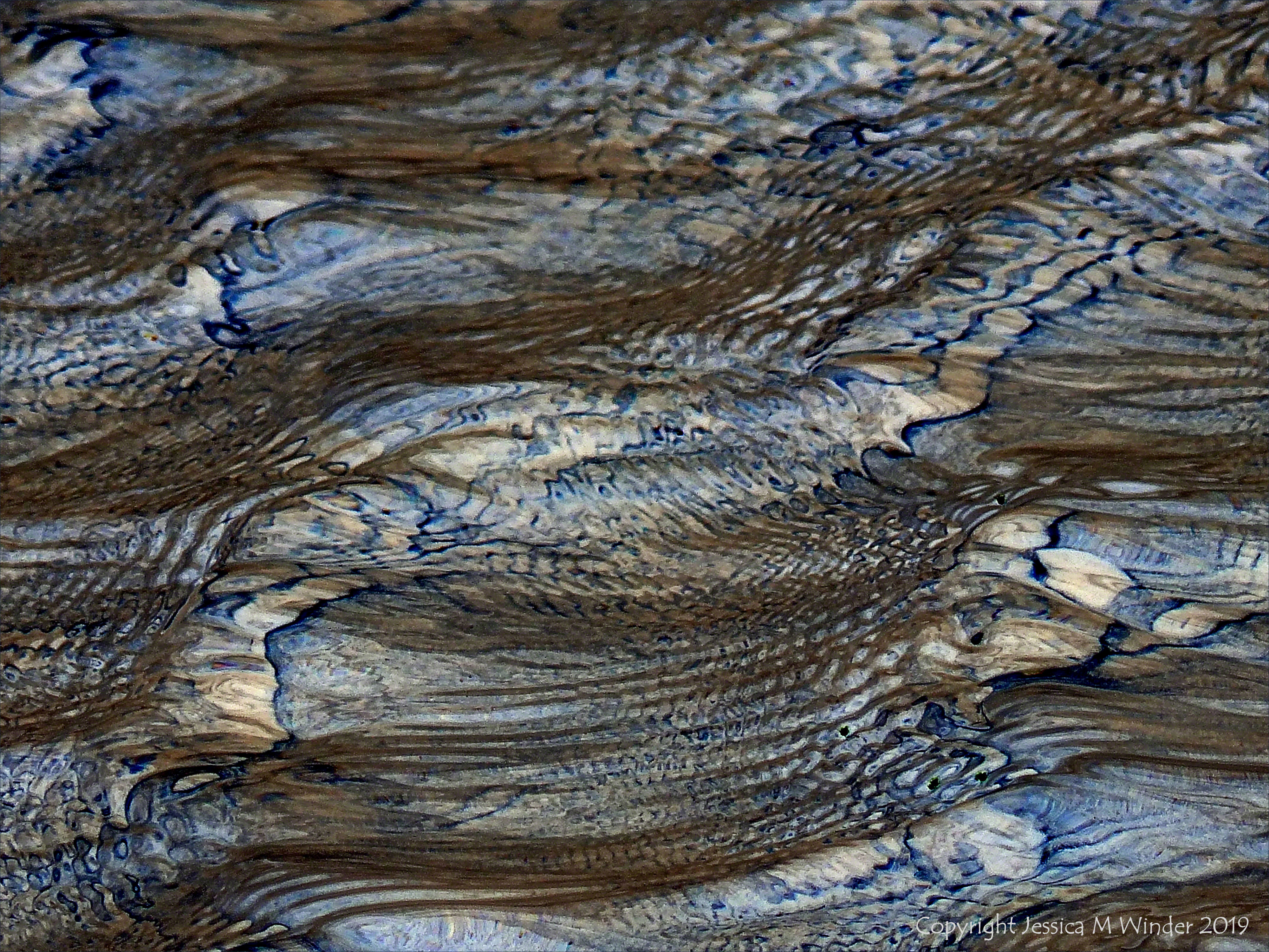 Water Study 2 – One of a long series of digitally re-coloured photographs of the ever-changing patterns of reflected light on shallow ripples at the water’s edge on the beach at Rhossili Bay in Gower, South Wales.