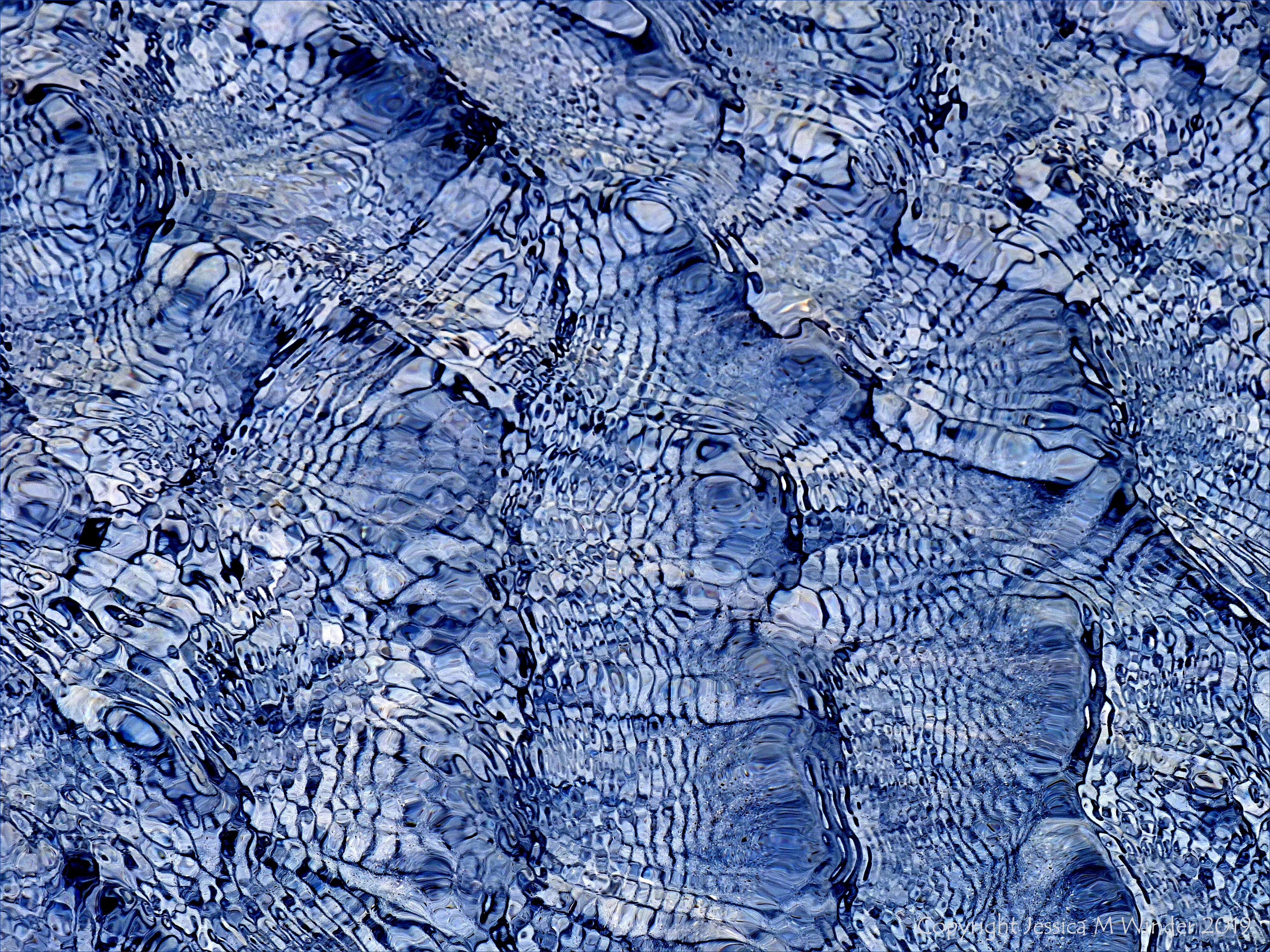 Water Study 9 – One of a long series of digitally re-coloured photographs of the ever-changing patterns of reflected light on shallow ripples at the water’s edge on the beach at Rhossili Bay in Gower, South Wales.