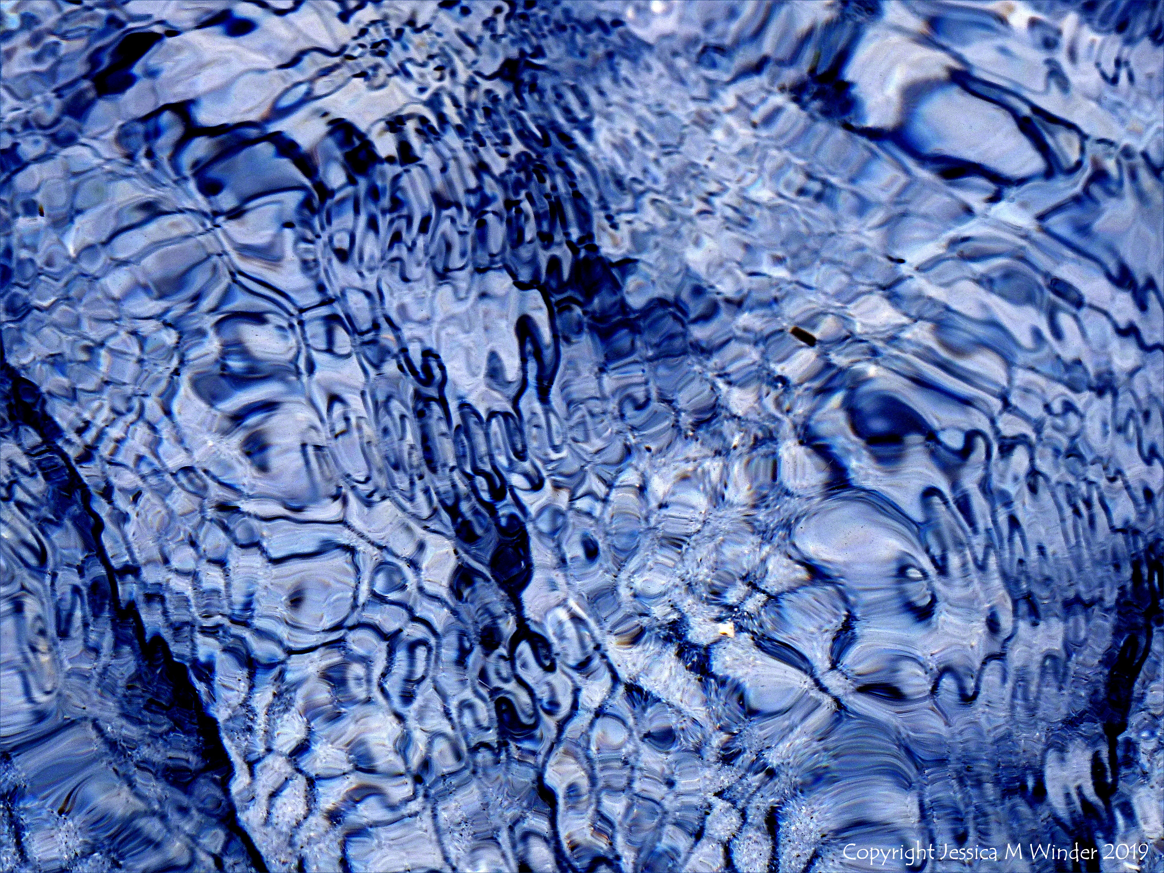 Water Study 17 – One of a long series of digitally re-coloured photographs of the ever-changing patterns of reflected light on shallow ripples at the water’s edge on the beach at Rhossili Bay in Gower, South Wales.
