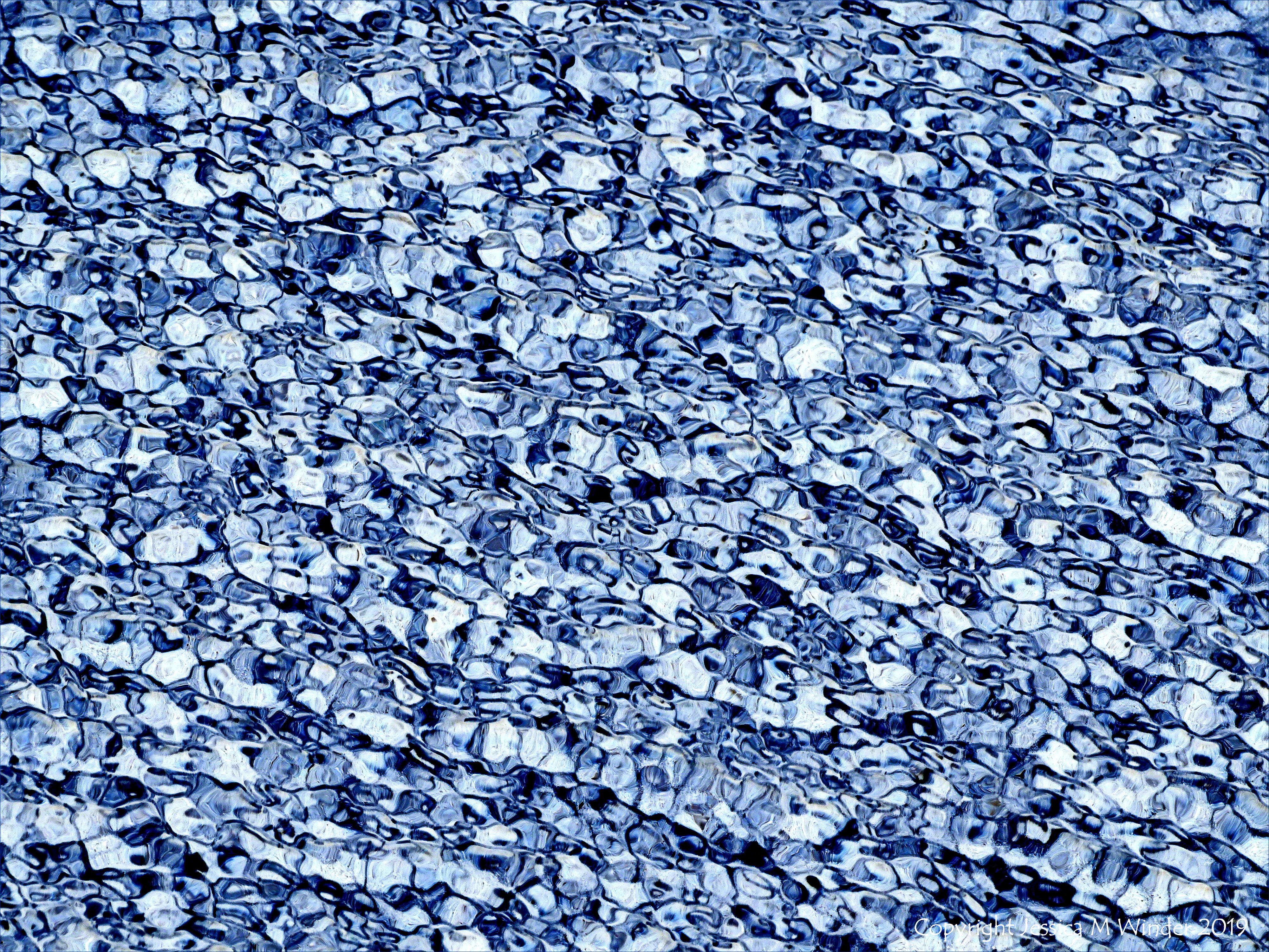 Water Study 25 – One of a long series of digitally re-coloured photographs of the ever-changing patterns of reflected light on shallow ripples at the water’s edge on the beach at Rhossili Bay in Gower, South Wales.