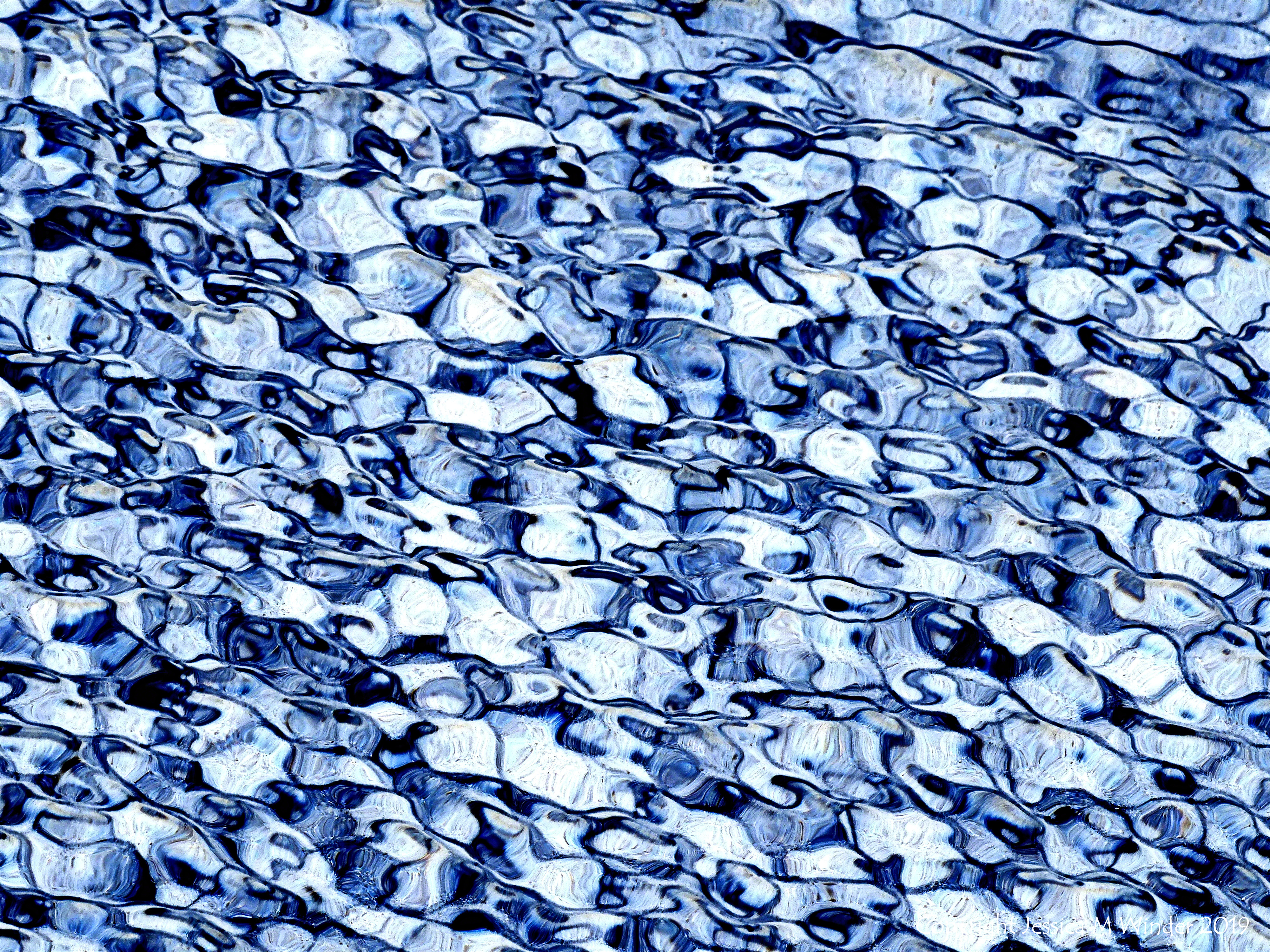 Water Study 27 – One of a long series of digitally re-coloured photographs of the ever-changing patterns of reflected light on shallow ripples at the water’s edge on the beach at Rhossili Bay in Gower, South Wales.