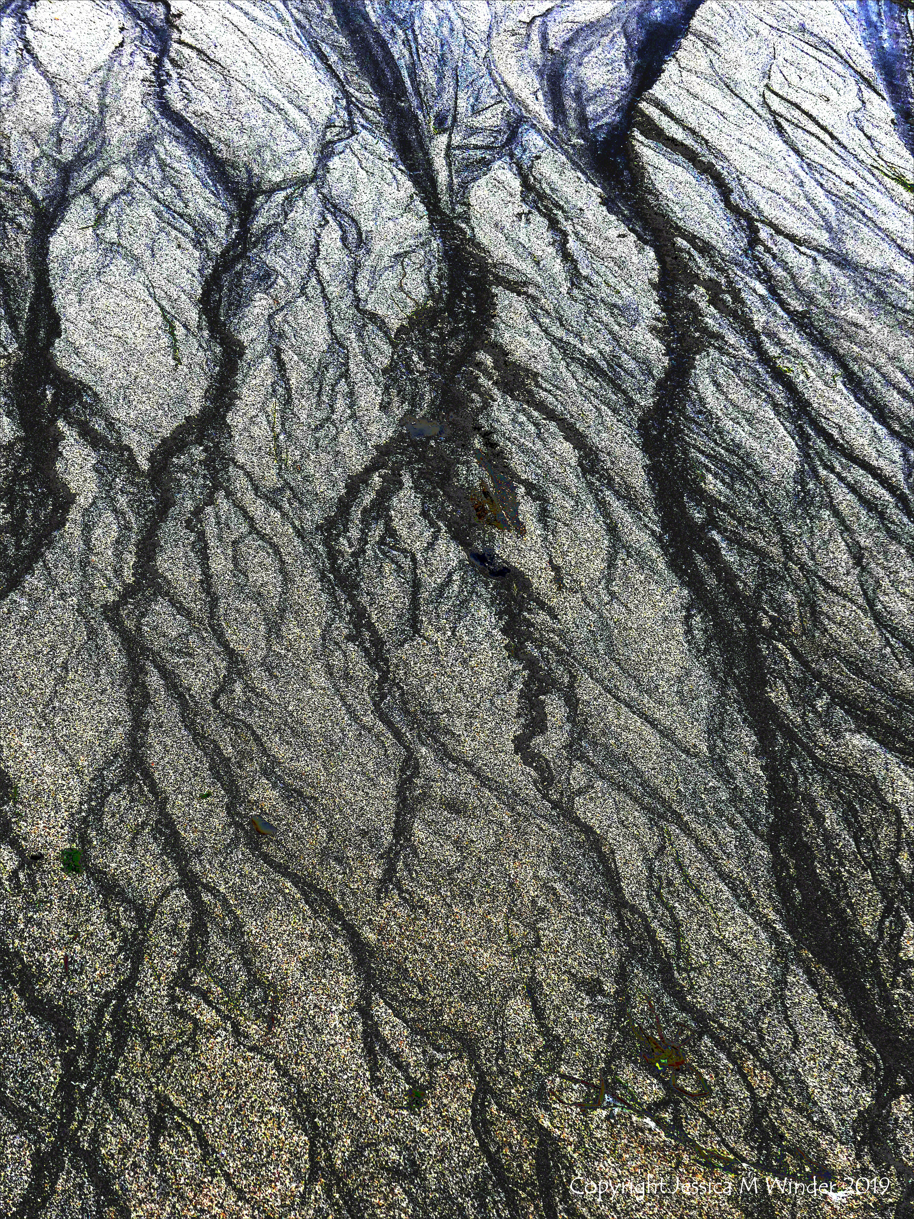 Sand Study 3 (Skaill 062018) – Edited photograph of natural dendritic or branching patterns in sand where water drains down the beach as the tide goes out, at Bay of Skaill in Orkney.