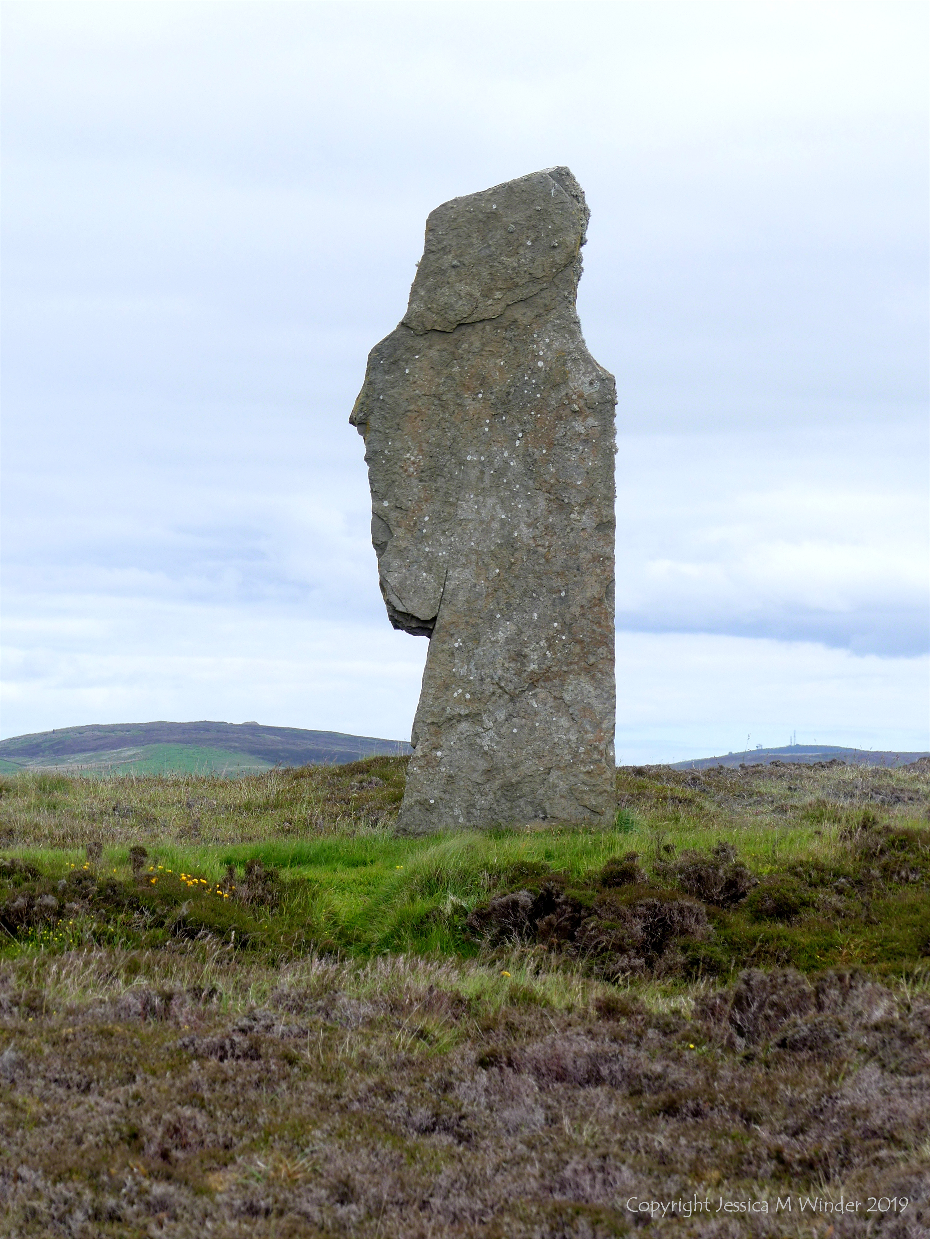 Orkney Flora 19 – Context shot of one of the standing stones at the Ring of Brodgar in Orkney where the wild flowers were photographed June 2018.