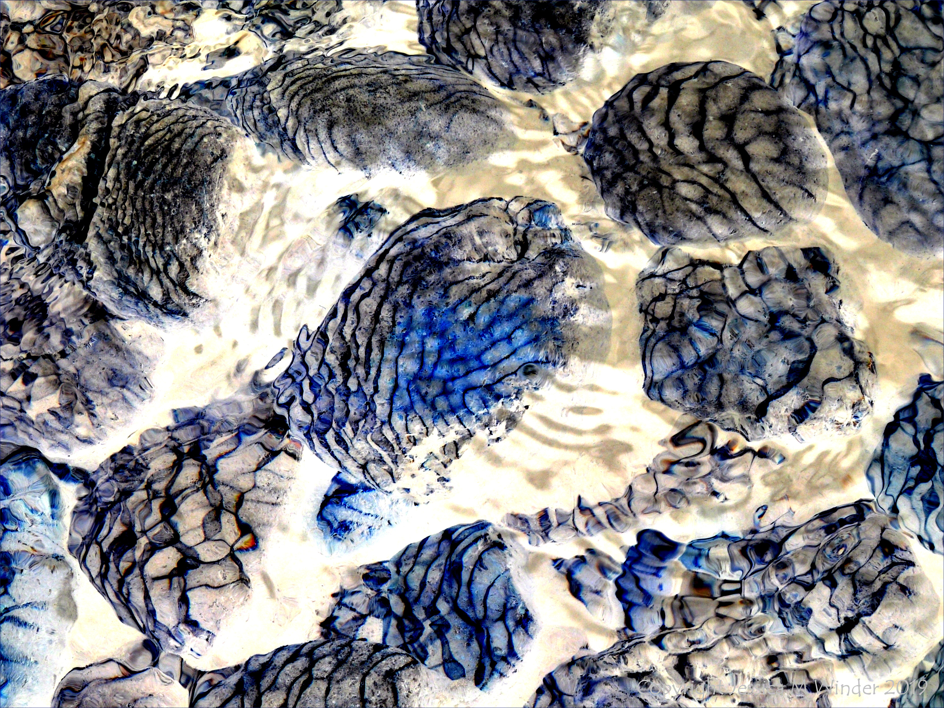 Part of a study of nNatural patterns of reflected light on river-bed pebbles