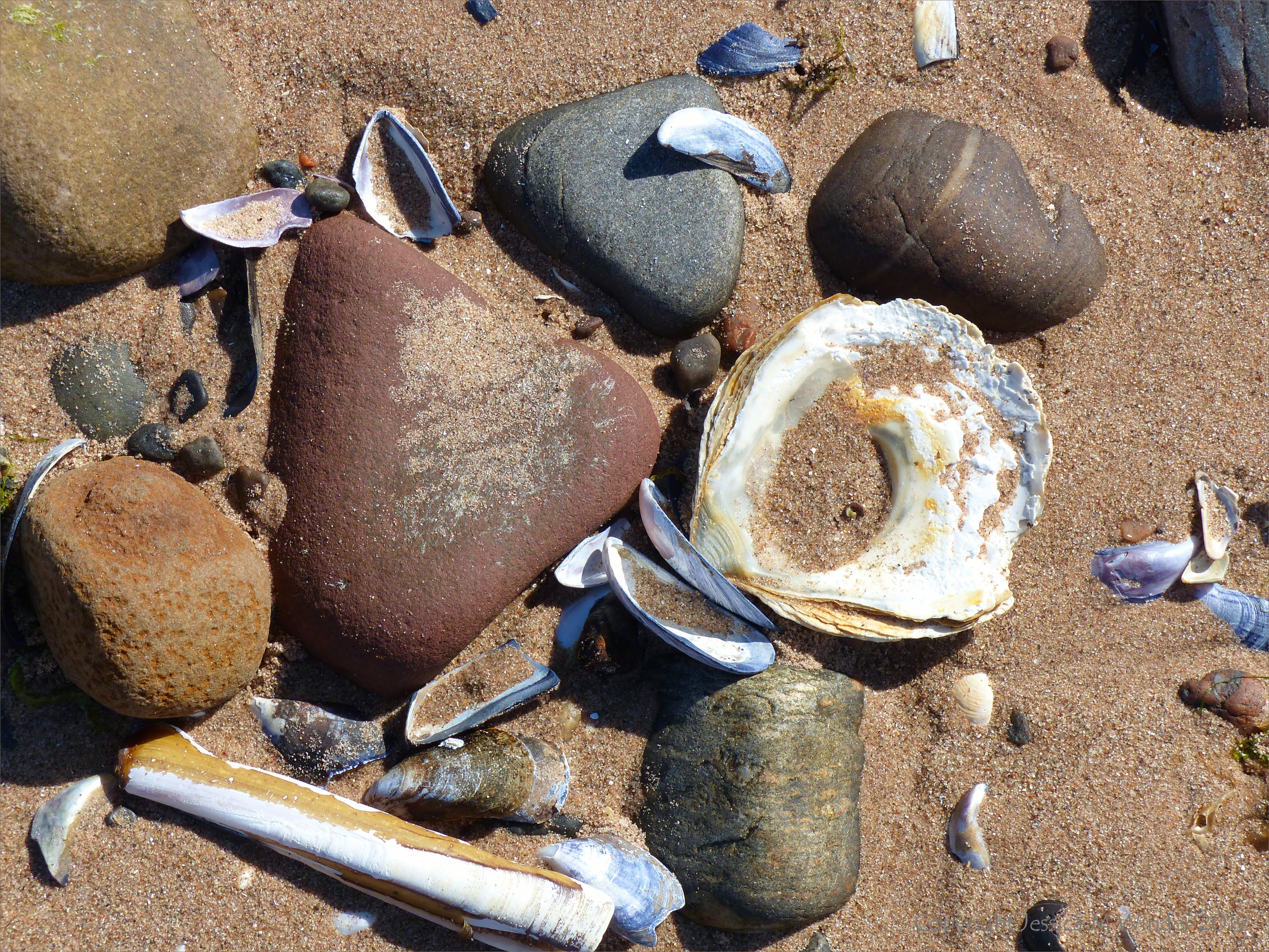 Shells and pebbles on the beach at Cromarty, Black Isle, Scotland