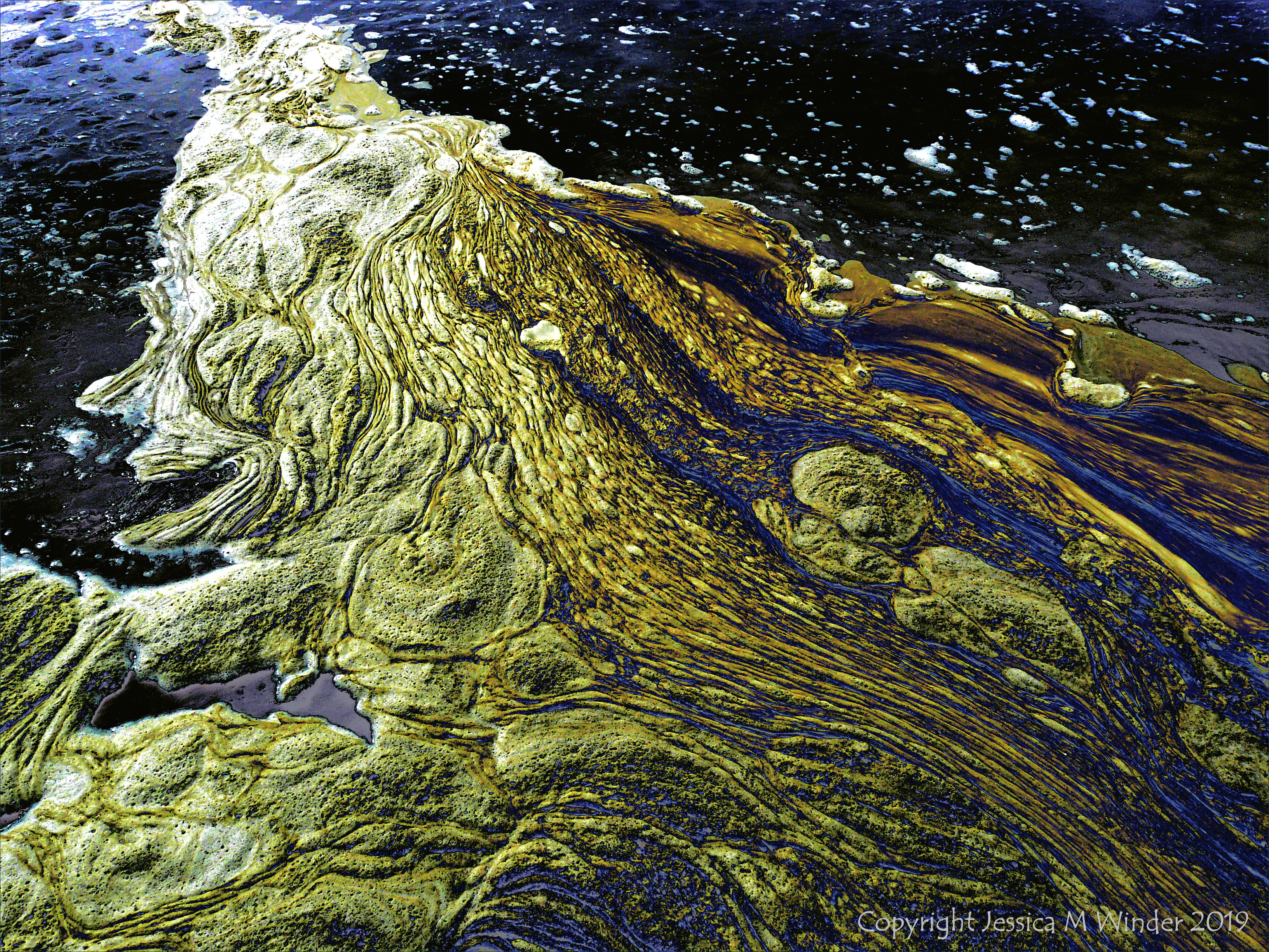 Seafoam texture and pattern on the beach in a re-coloured photograph