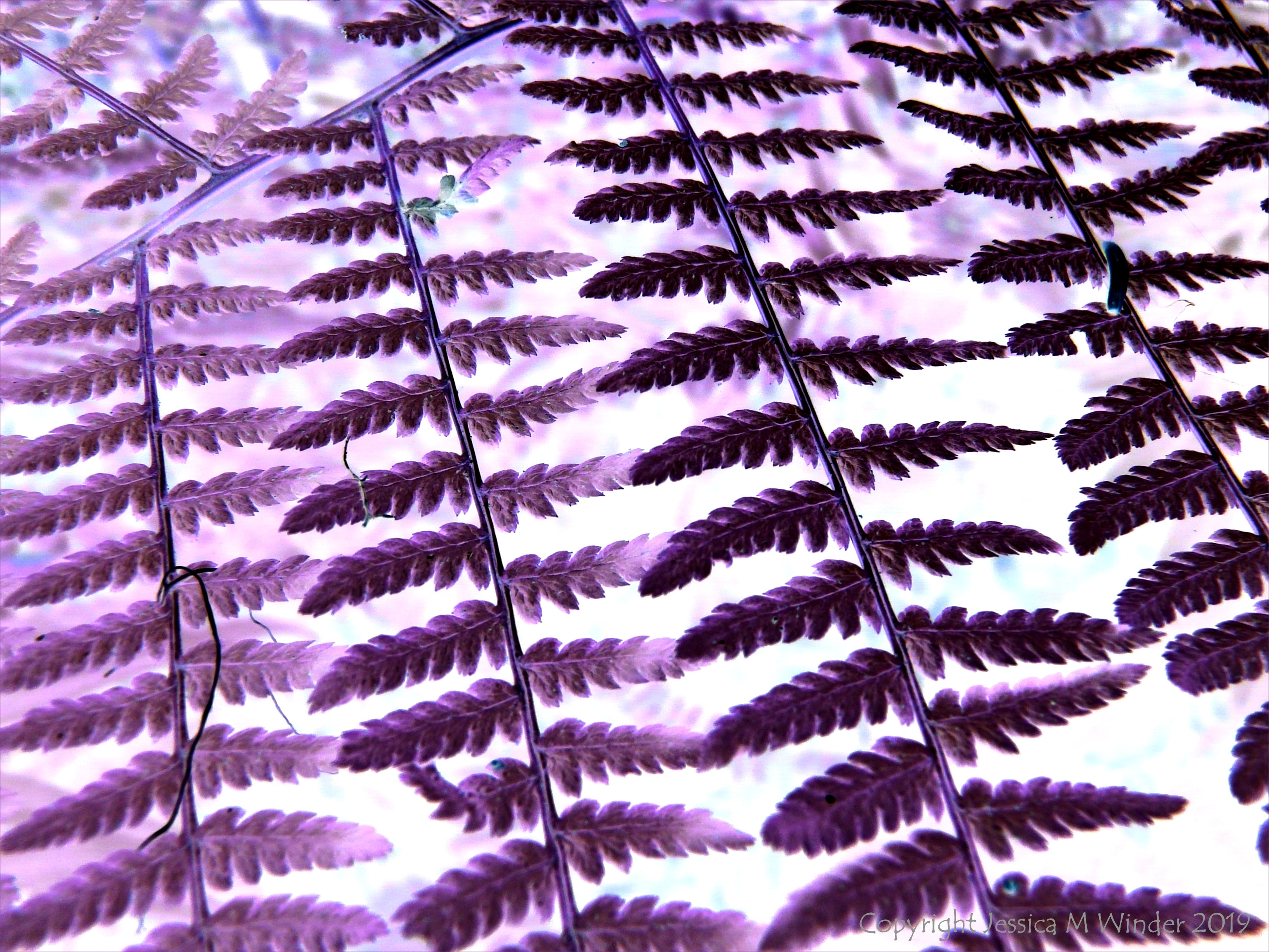 Fern Study 1 Natural patterns of fern fronds in a re-coloured photograph. A negative point of view is not always a bad one.