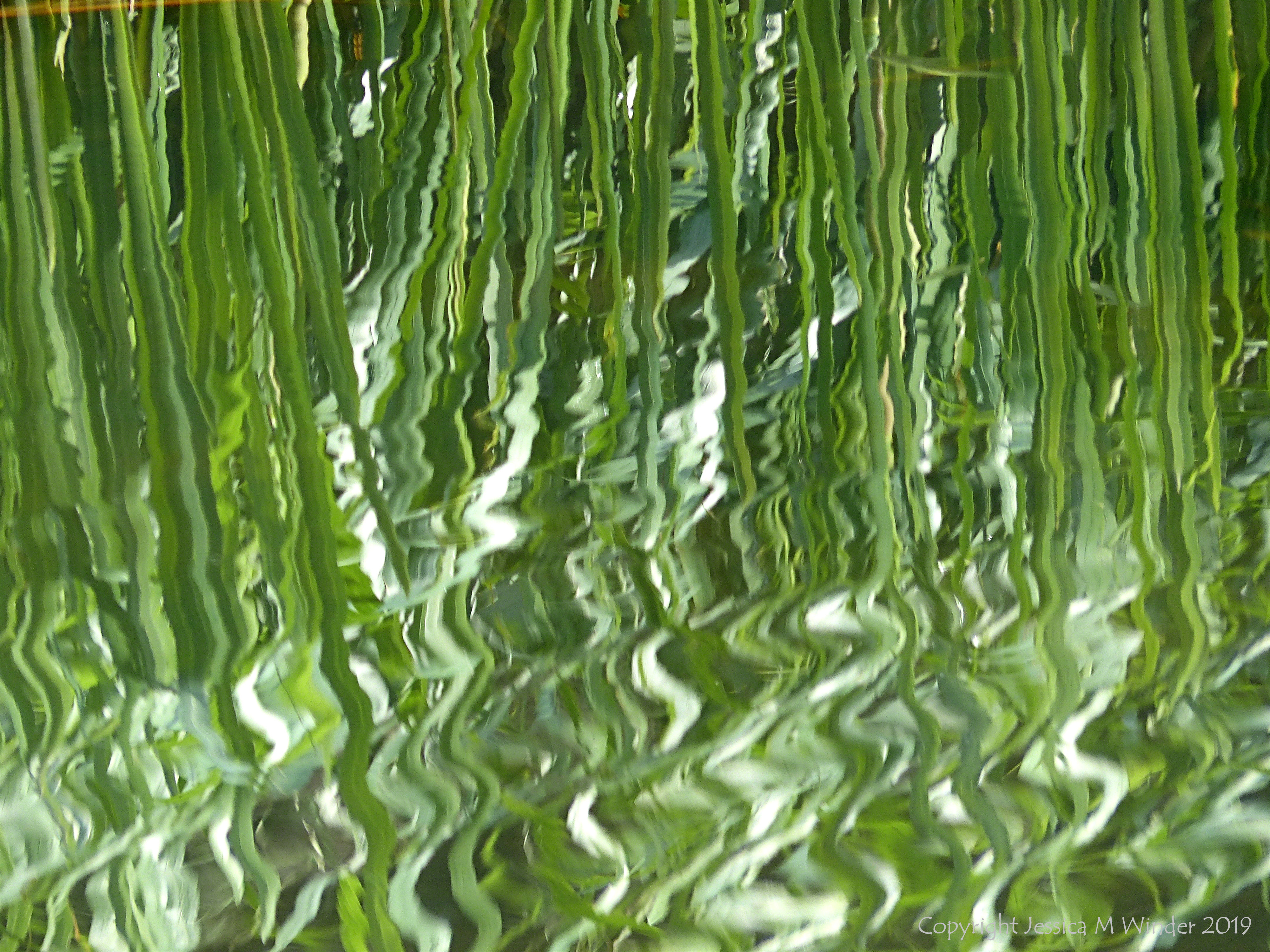 Reflections of reeds in the water of a pond on Pontypool Park August 2015