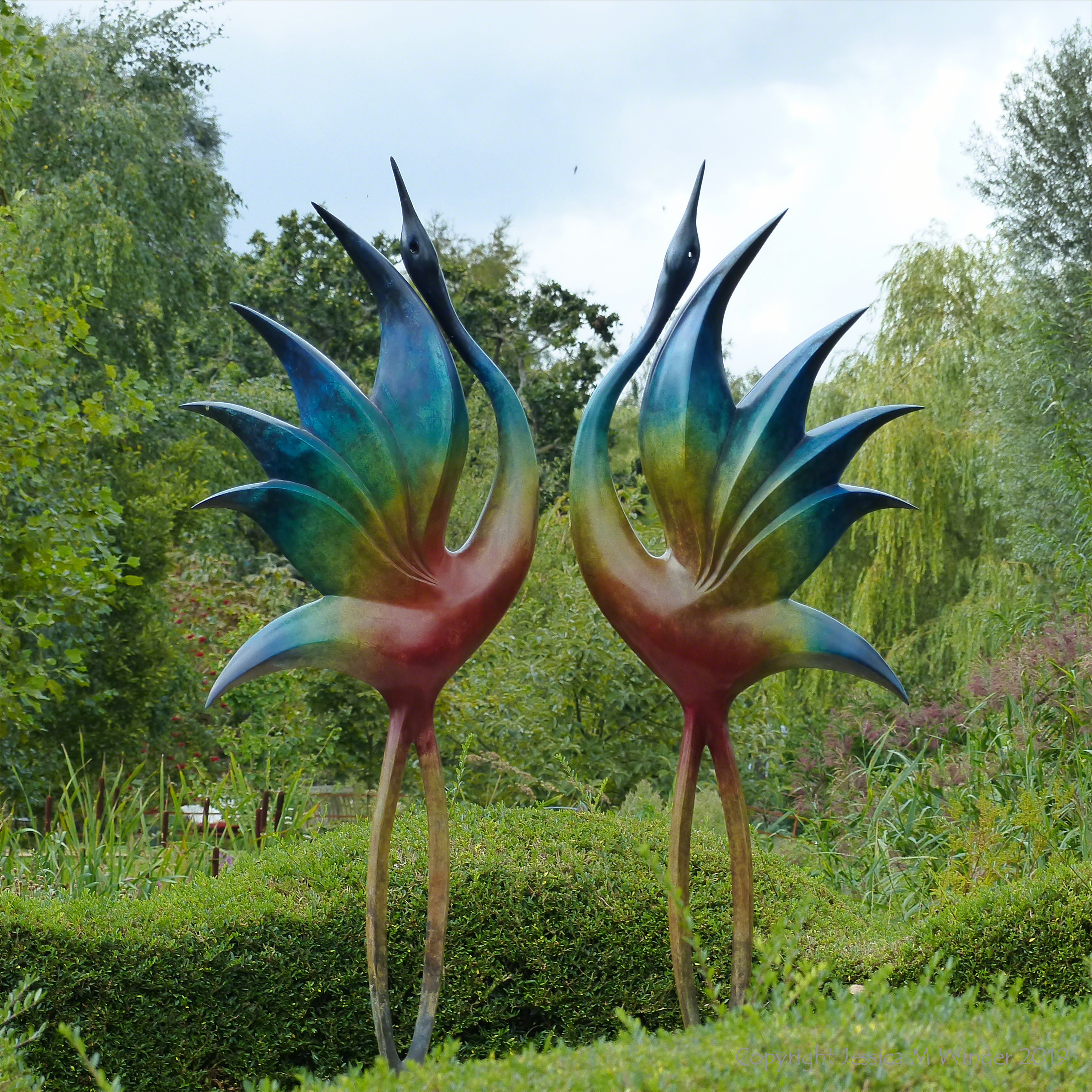 Pallington Lakes 50 SBTL08.19 “Dancing Cranes” sculpture in the gardens at Sculpture by the Lakes, Pallington, Dorset August 2019