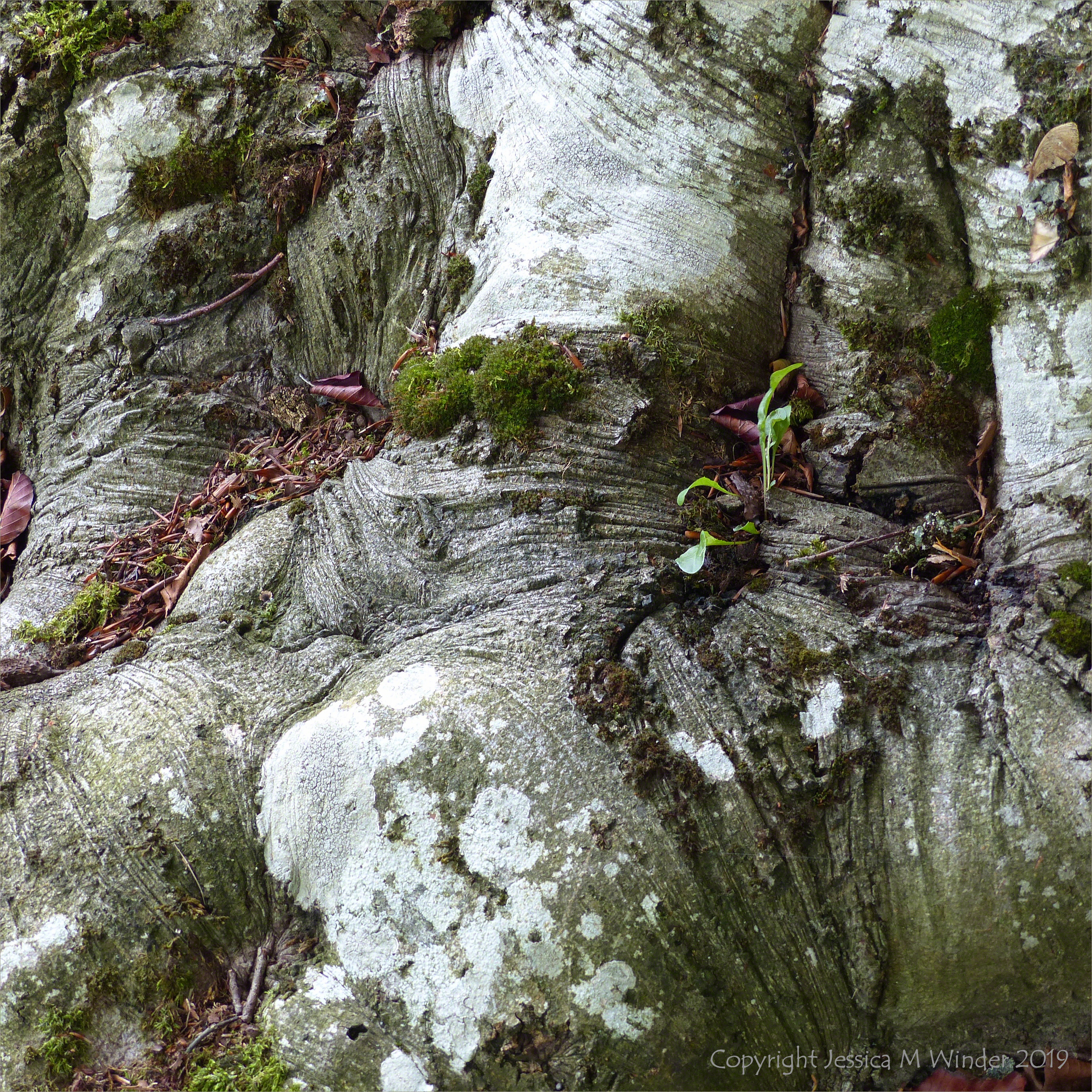 Just a Tree by the Path 6 Gnarled roots of an old purple or copper beech tree by the path in Charlton Down, Dorset, September 2019