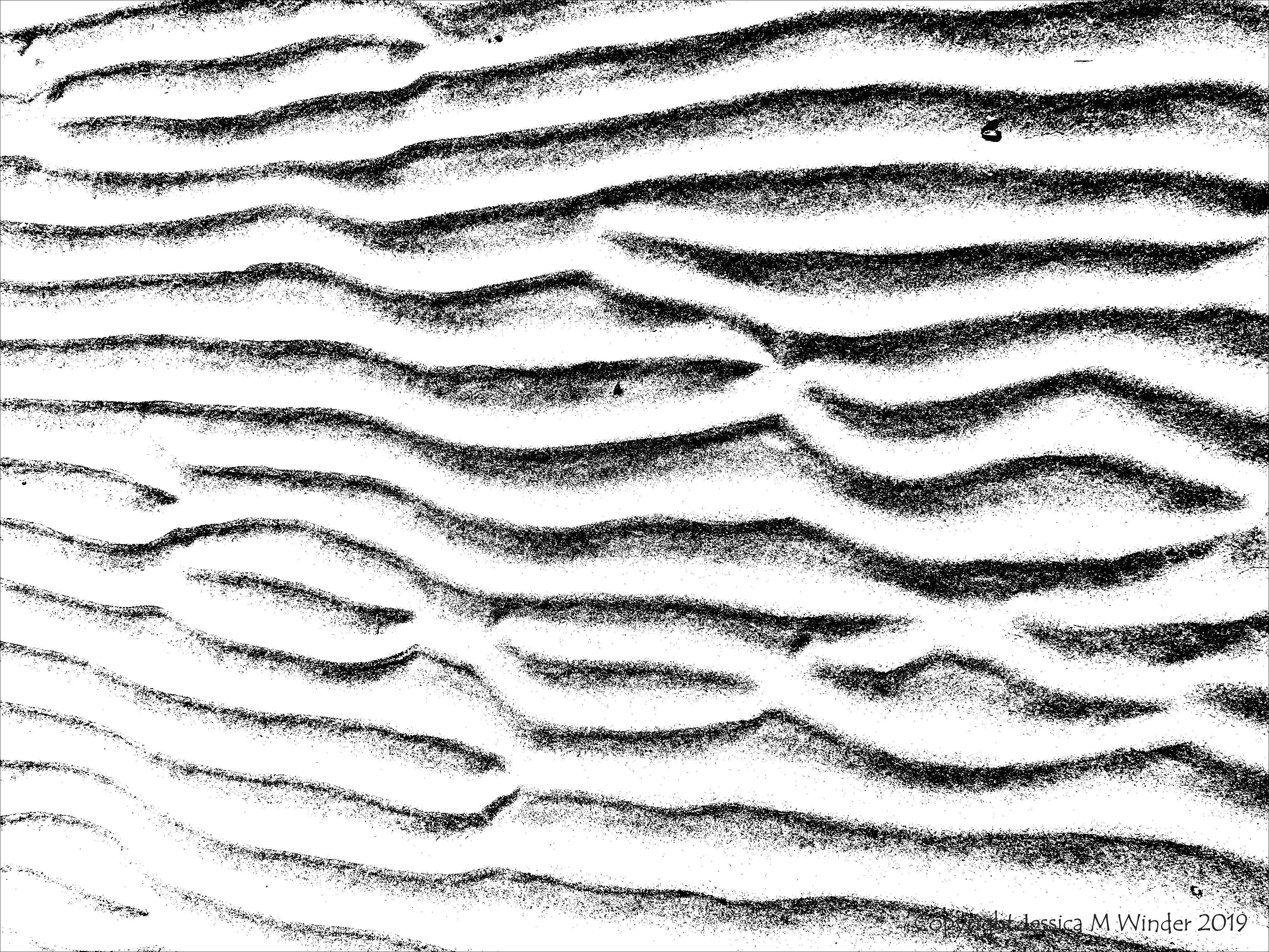 Black and white photographic image of sand ripple pattern and texture at low tide on Whiteford Sands, Gower, South Wales.
