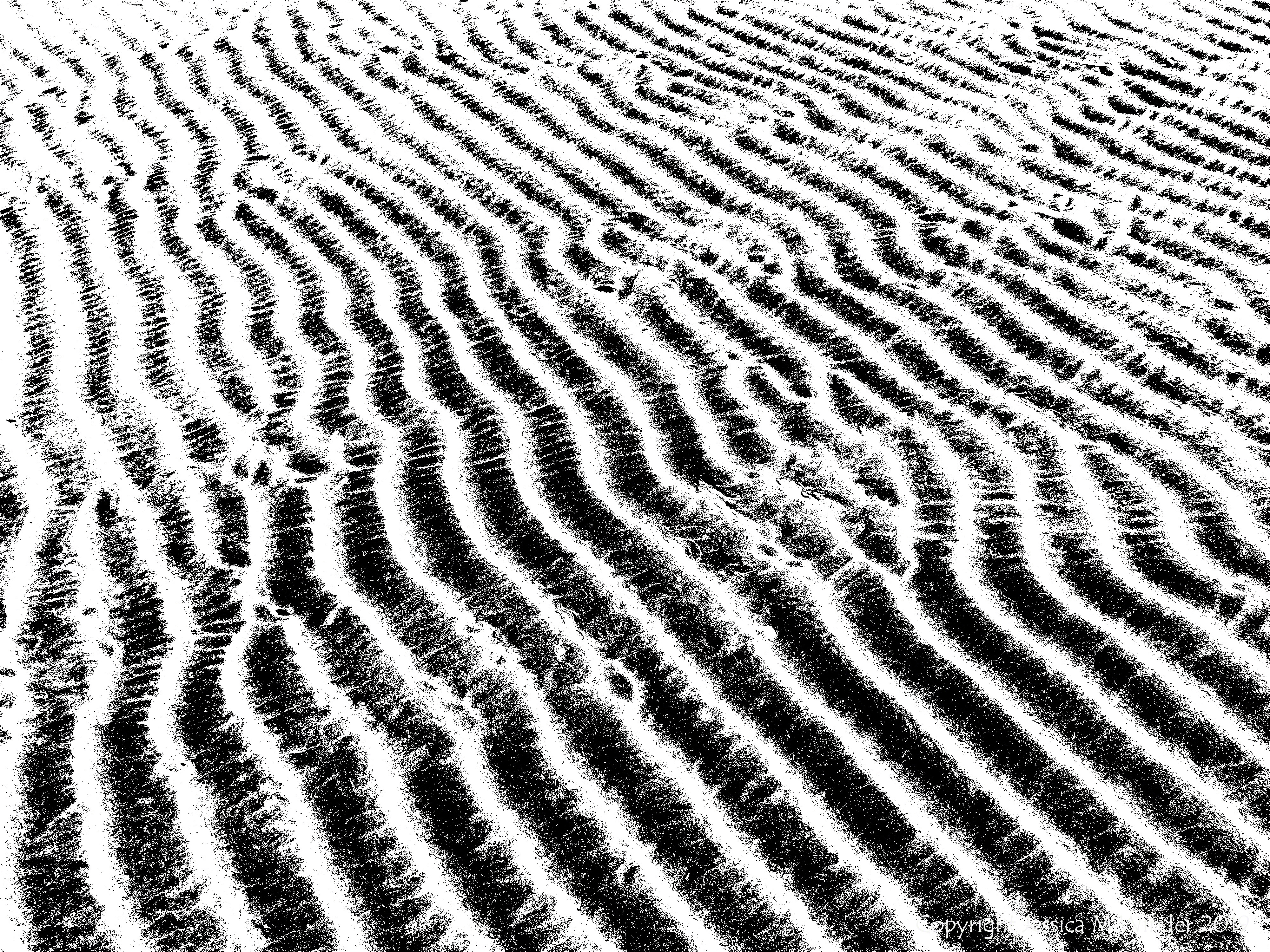 Black and white photographic image of sand ripple pattern and texture at low tide on Whiteford Sands, Gower, South Wales.