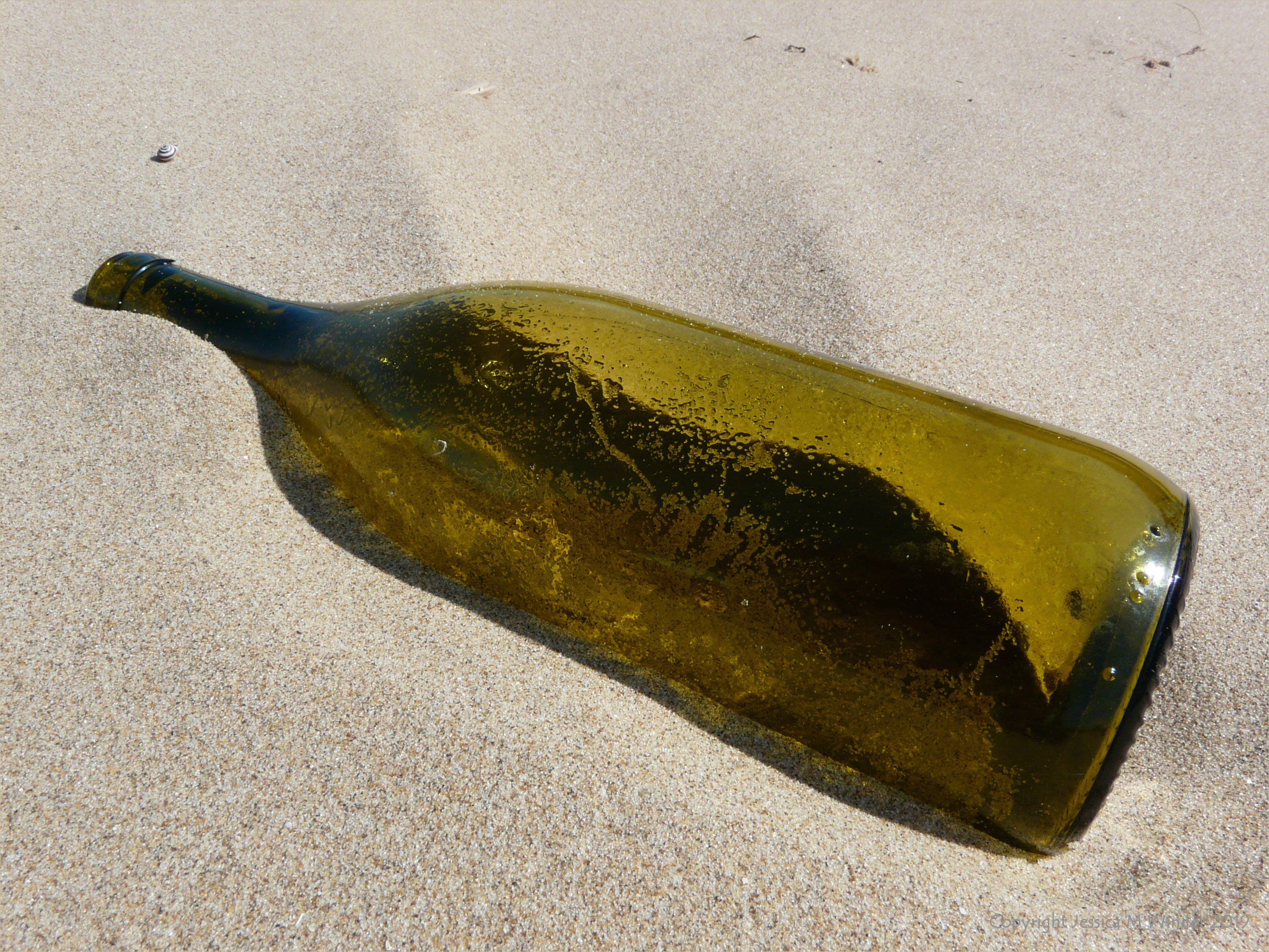 Empty wine bottle washed ashore as flotsam