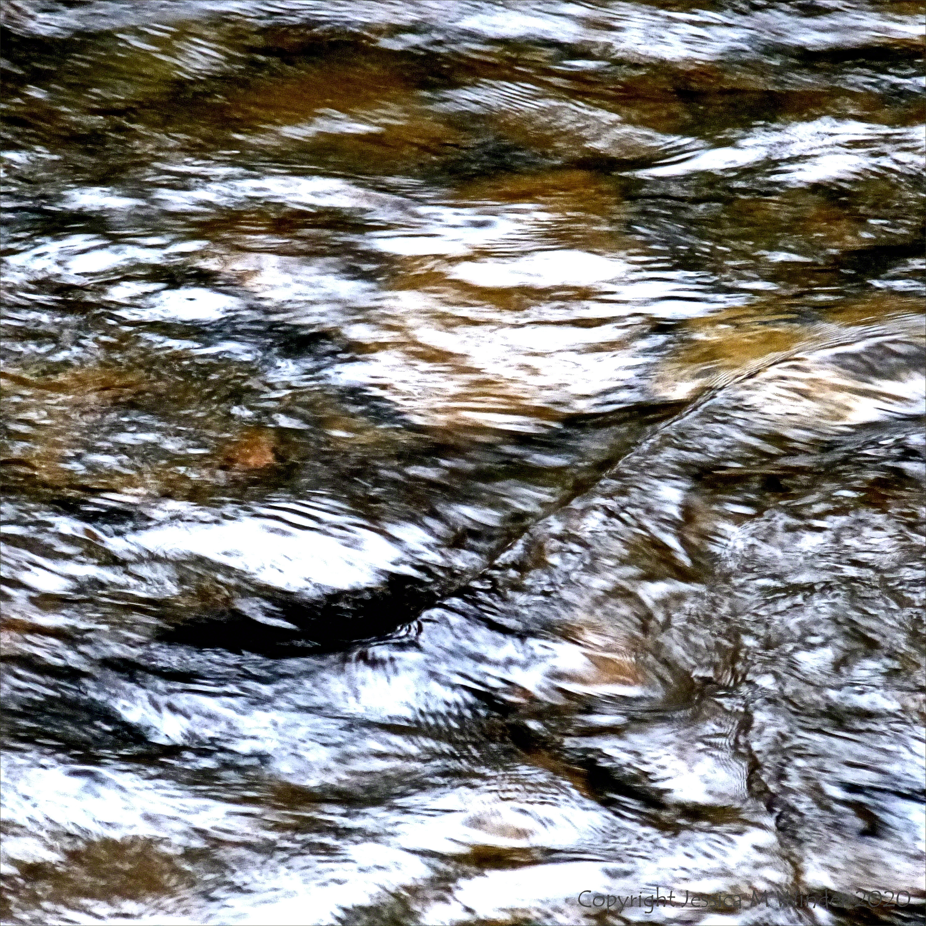 Fast water flowing in the Afon Llwyd at Pontypool Park in South Wales, November 2019.